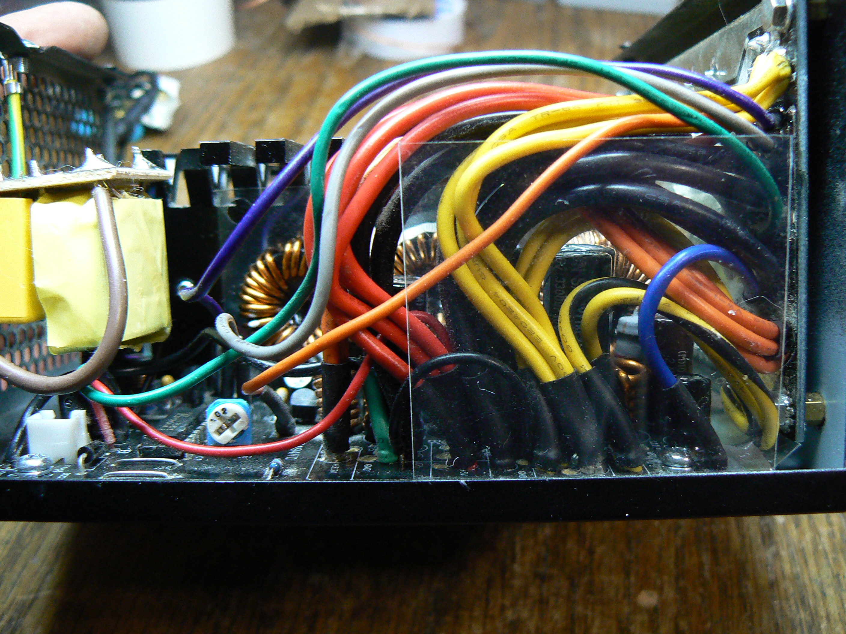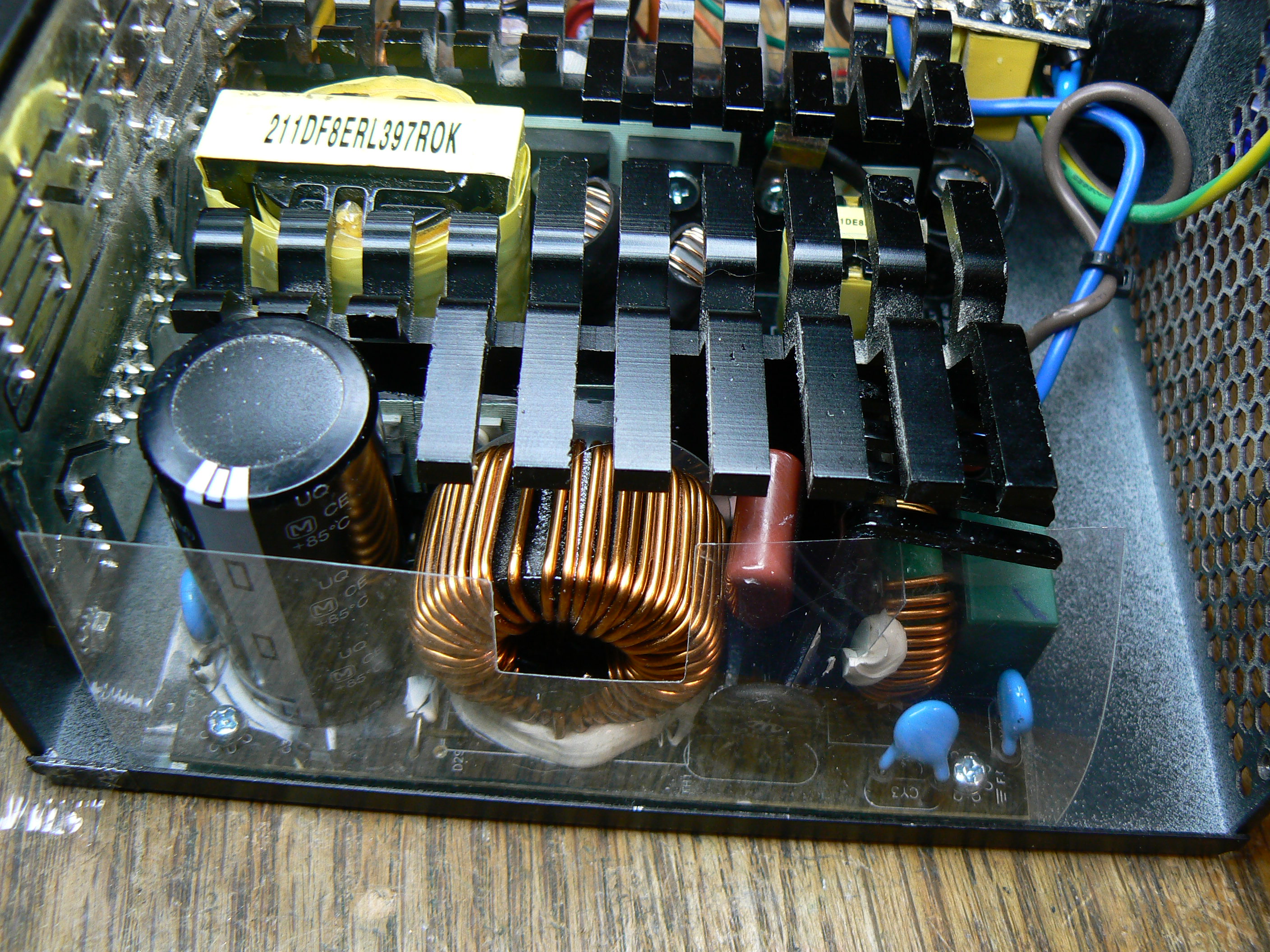 When the supply is "turned on" via the green wire, the PFC booster starts. Rectified line voltage is boosted to 400V or so, also passing through the thermistor.