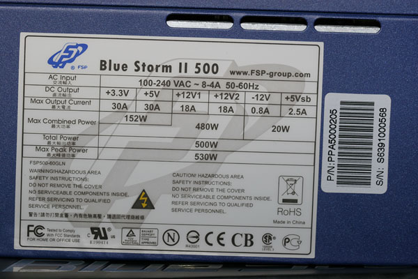 pcb notes FSP500-60GLY not GLN like on the specs sticker. Anyway they call it "Fortron Green" and it is what the Zalman ZM-460APS is based on.