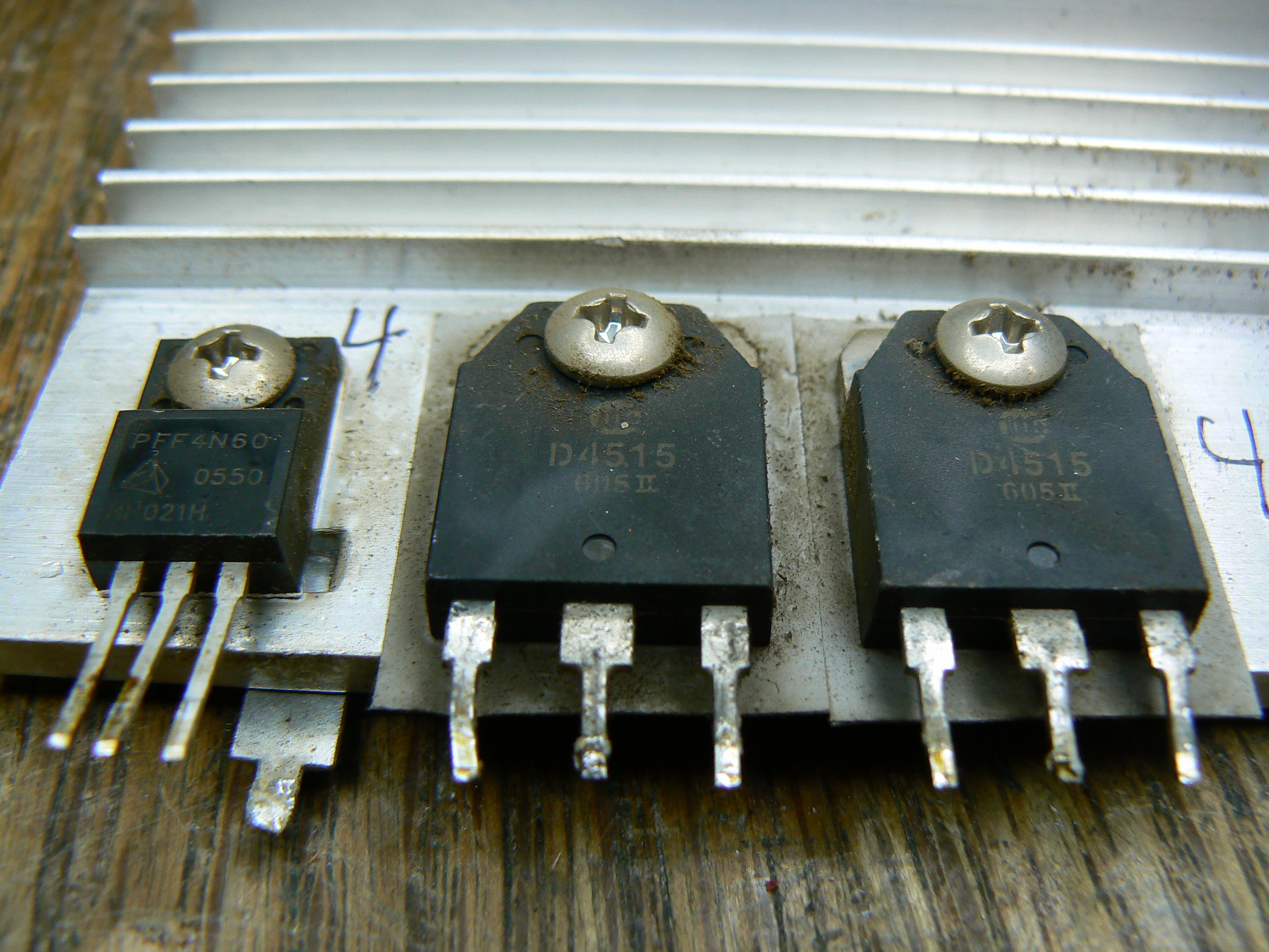 The circuit board in this supply is marked revision B, but I have not yet found where it differs from revision A. So far I have found one difference between the revisions. The main input caps on this supply did not disappoint me like the ones in the SP-500 did, as this one has my favorite brand of caps, genuine Fuhjyyu 820uF 200V. However, I think they may be fakes since there is no sign of bloating or leaking from them. The rectifier in this supply is a KBU8 which is rated for 8 Amps, 2 amps lower than the SP-500. The two main switching transistors are marked D4515 which are 400V 15A which is the same rating as what was in the SP-500. The main 5vsb transistor is a 4N60 as I expected.