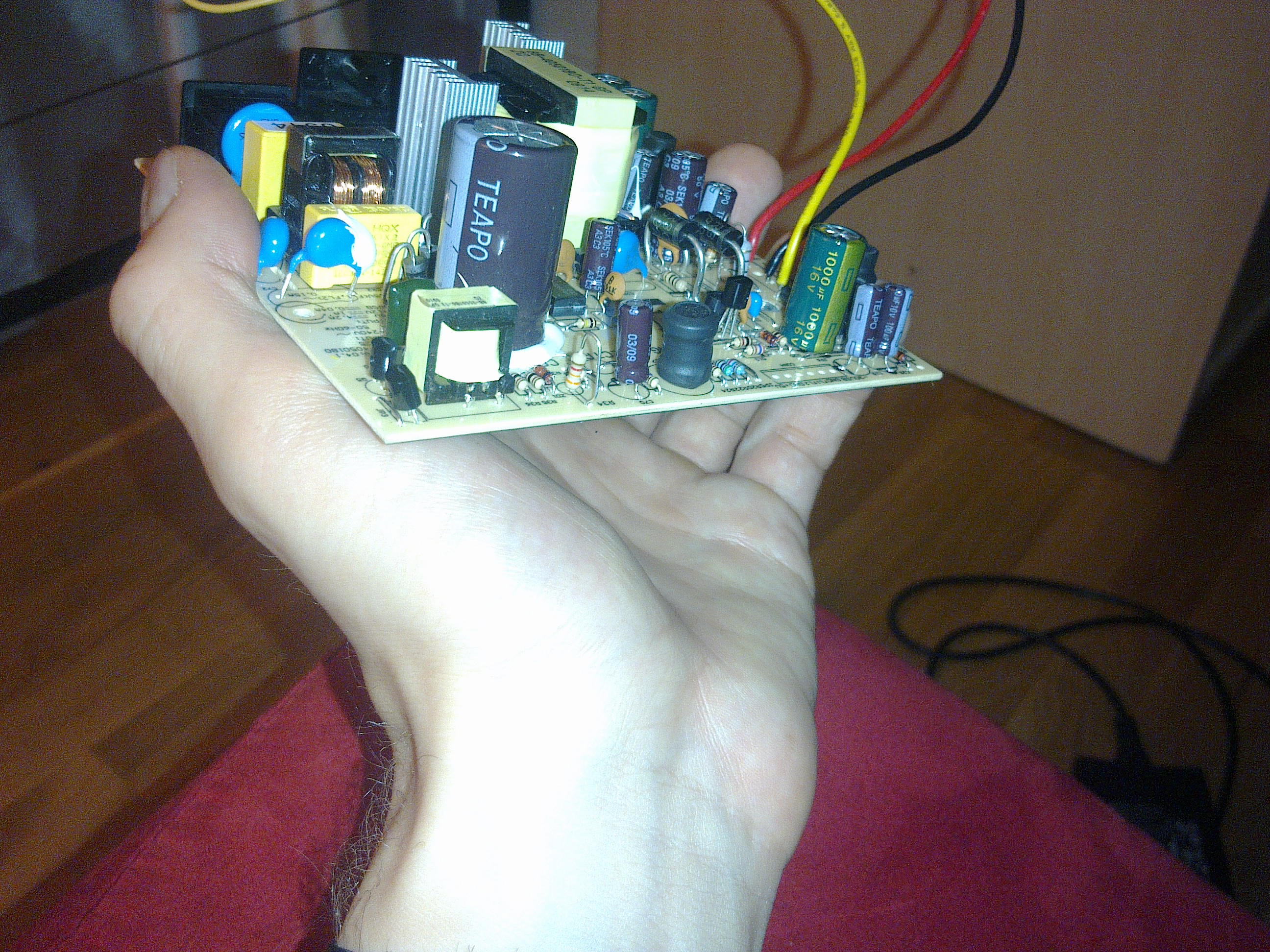 Posted this just for sake of interest. Power supply looks neat and well built for me, and it is full of teapo caps, non of them are leaky though. It does the job of supplying my 3,5" hard drive with +12V input. I did not have anything to test the output ripple with.
