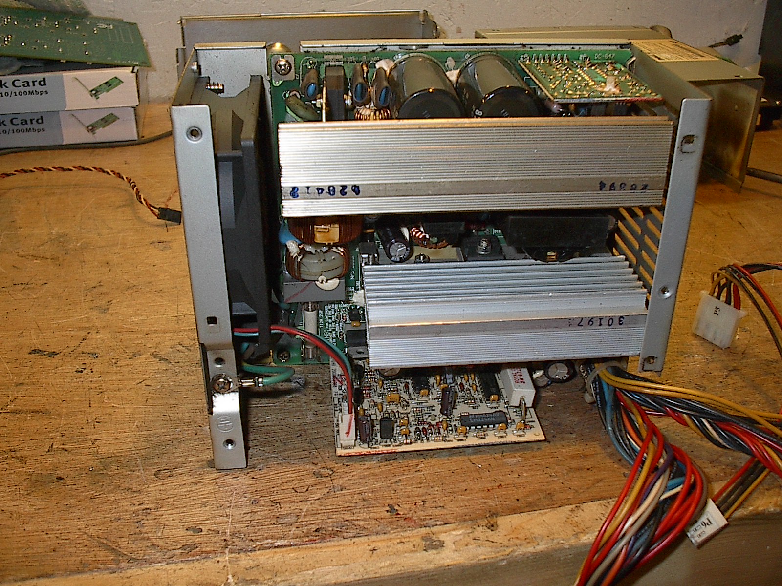 This is a 300W NPS-300GB out of a Dell Poweredge 1400. It has bigger heatsinks than my 520W Vantec, and has UCC and Rubycon caps. Does anyone know who makes this so I can try to find a bigger version for my main PC? This thing has about 6 years of 24/7 use on it and still looks great