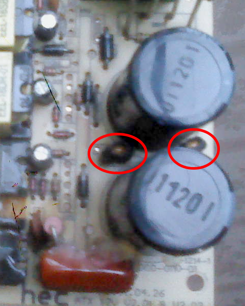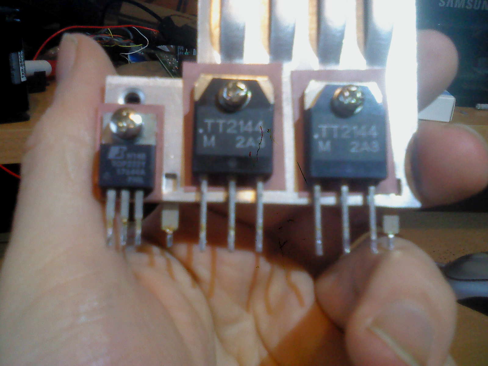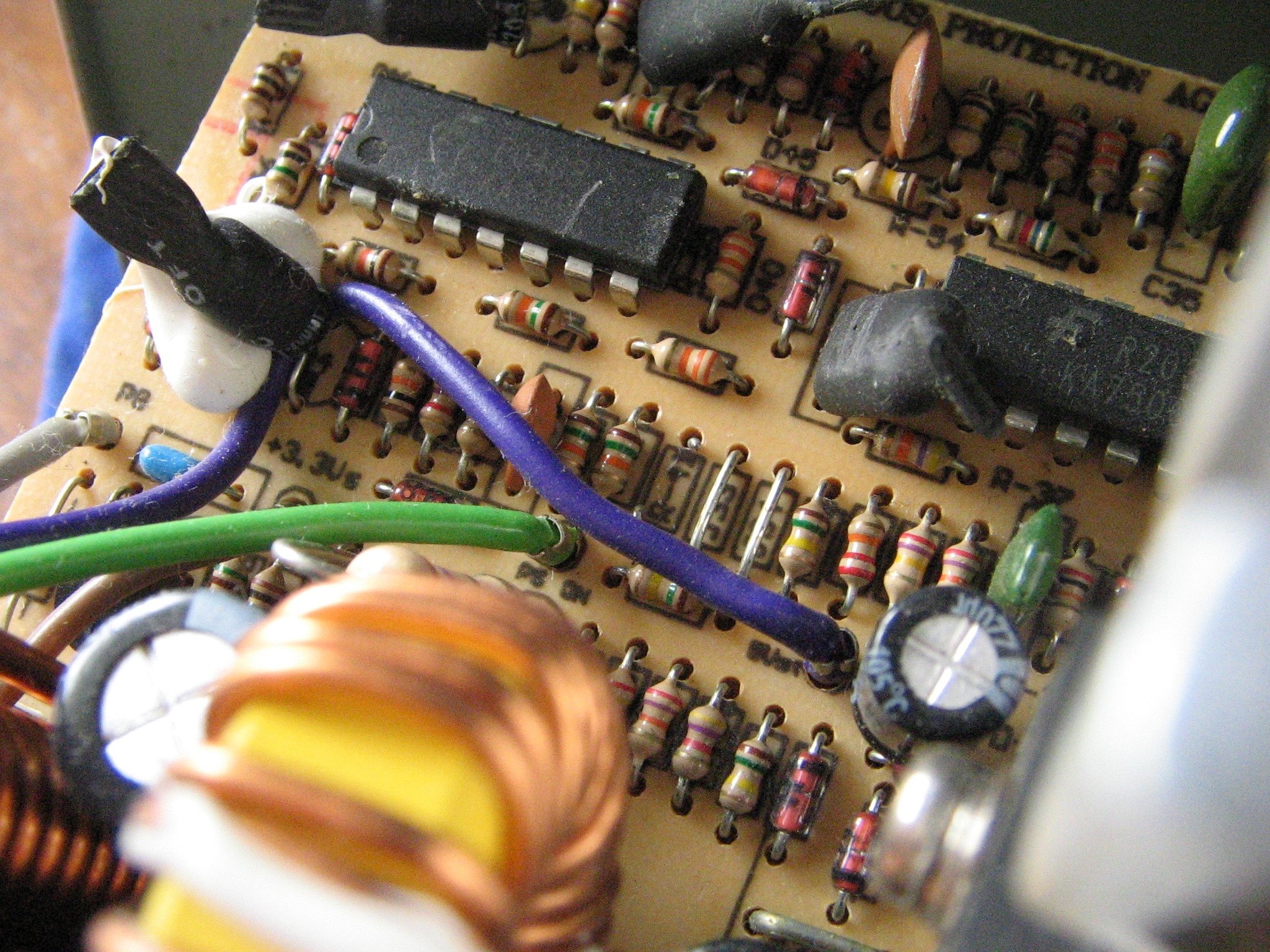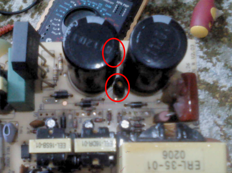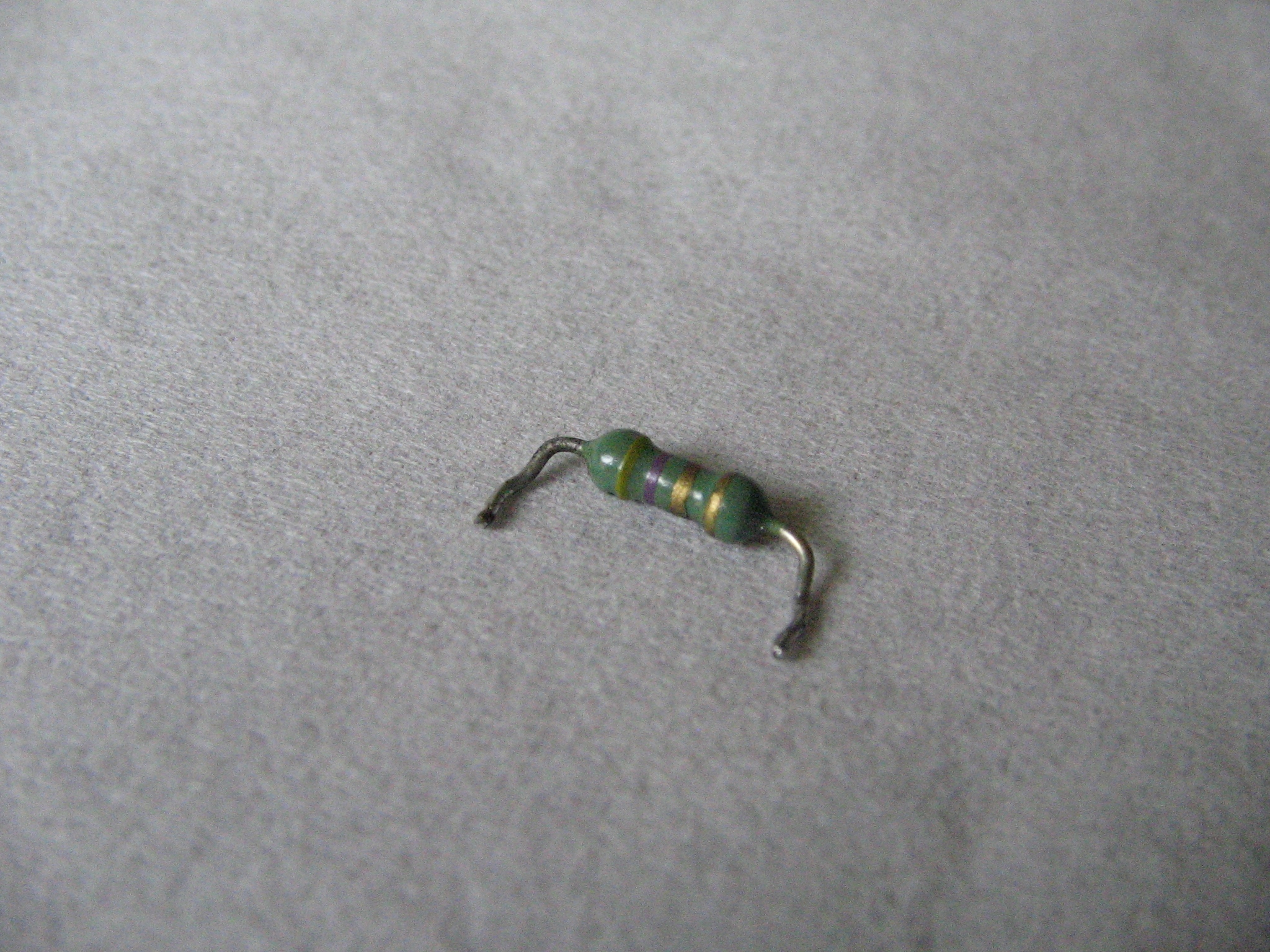 and a resistor that I can't identify it's color code is "yellow violet gold gold" that is what made the pop sound.