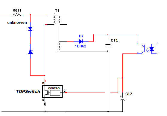 Found the 5vstb controller a TOP222Y has failed 42ohms drain to source,