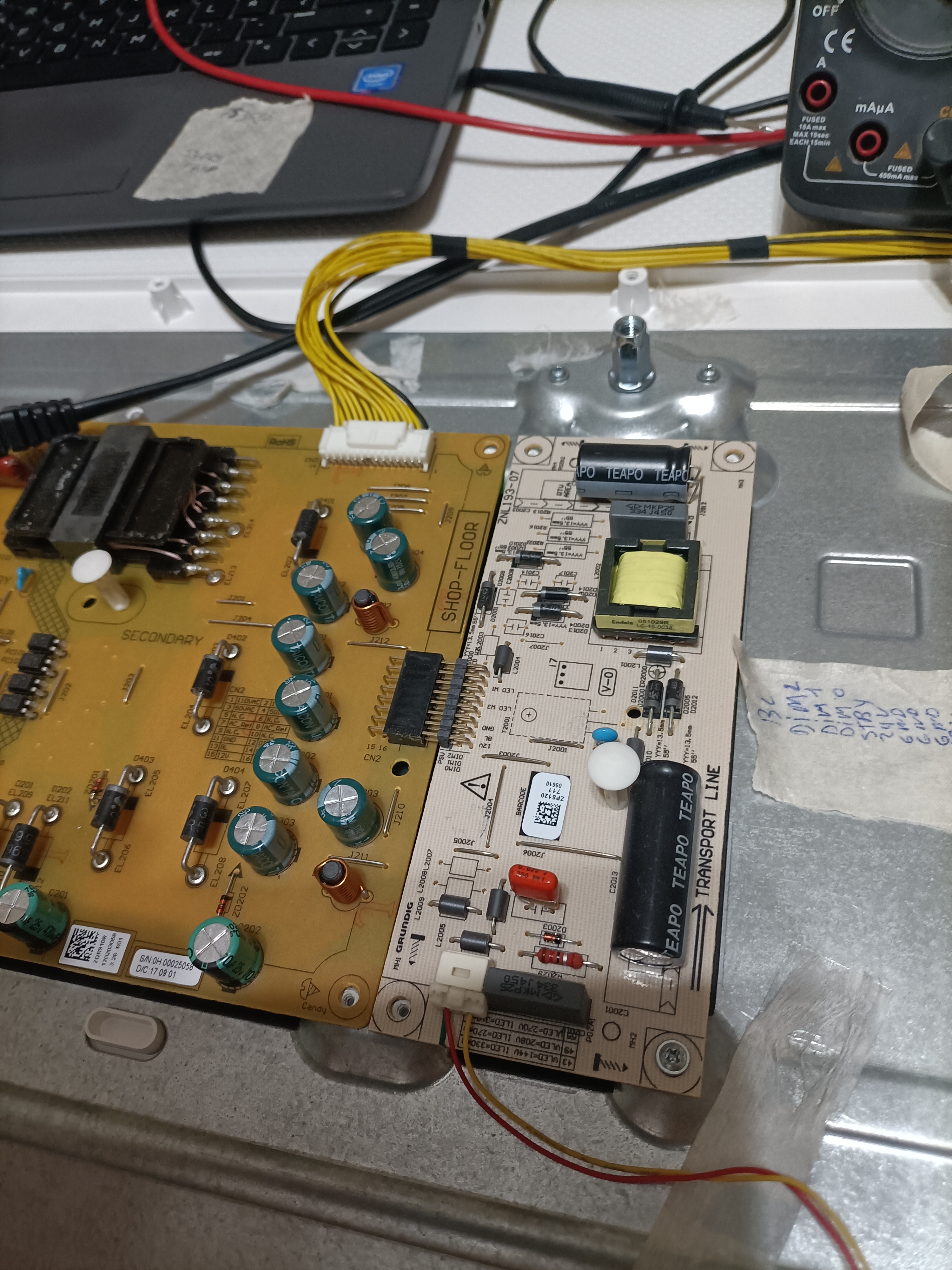 you need to check the serviceability of the backlight, apply a voltage of 200 volts with a current limit of 250 mA, red wire is positive, yellow is negative