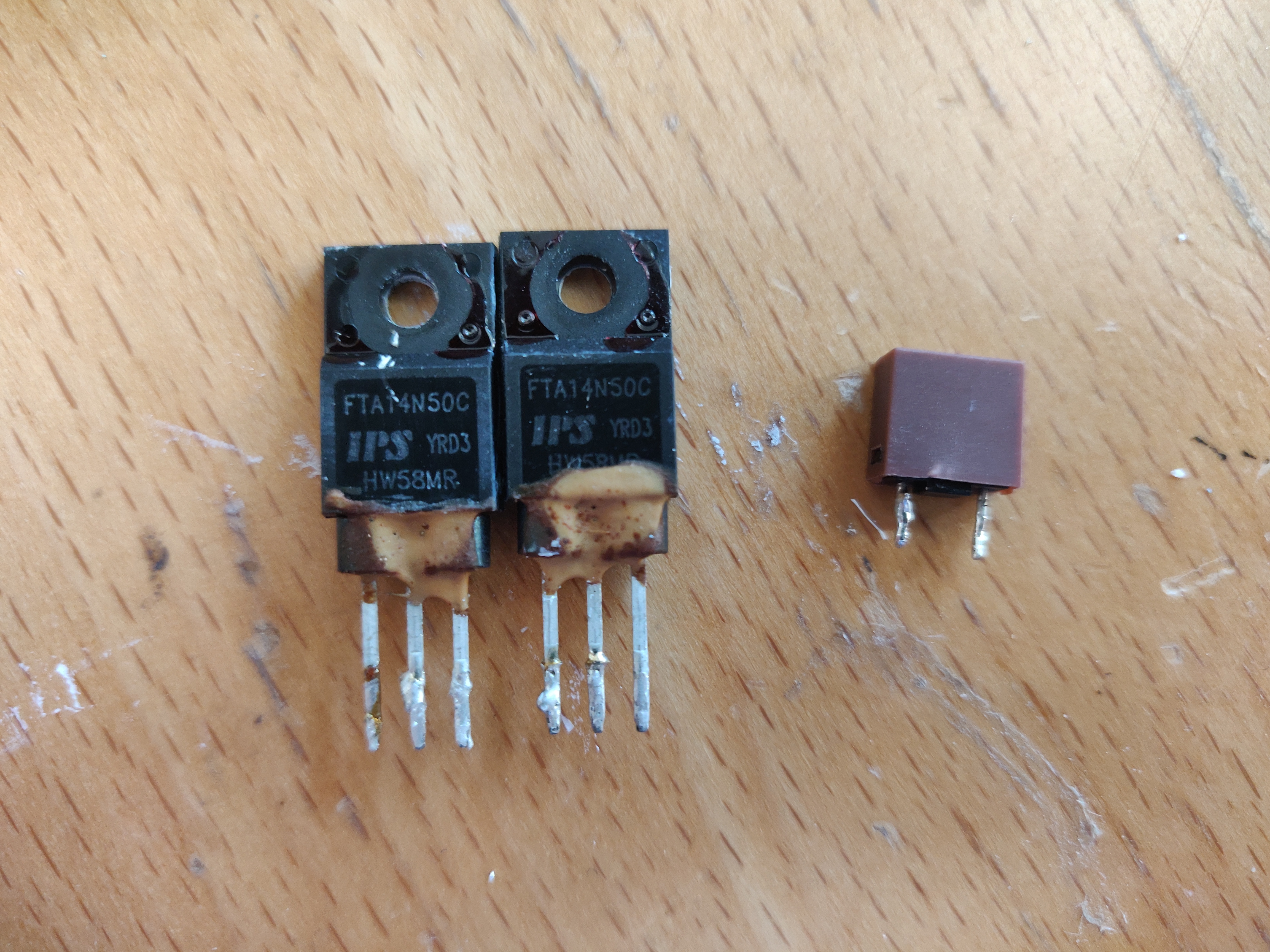 I found a project in the electronics trash yesterday. A nice Argon SA1 audio amp with some electrical issue. Took it apart and saw that the 4A250V fuse was blown so started lifting components to find the short. Eventually got to two MOSFETs (model FTA14N50C) that are shorted and when i took them out the short was gone.