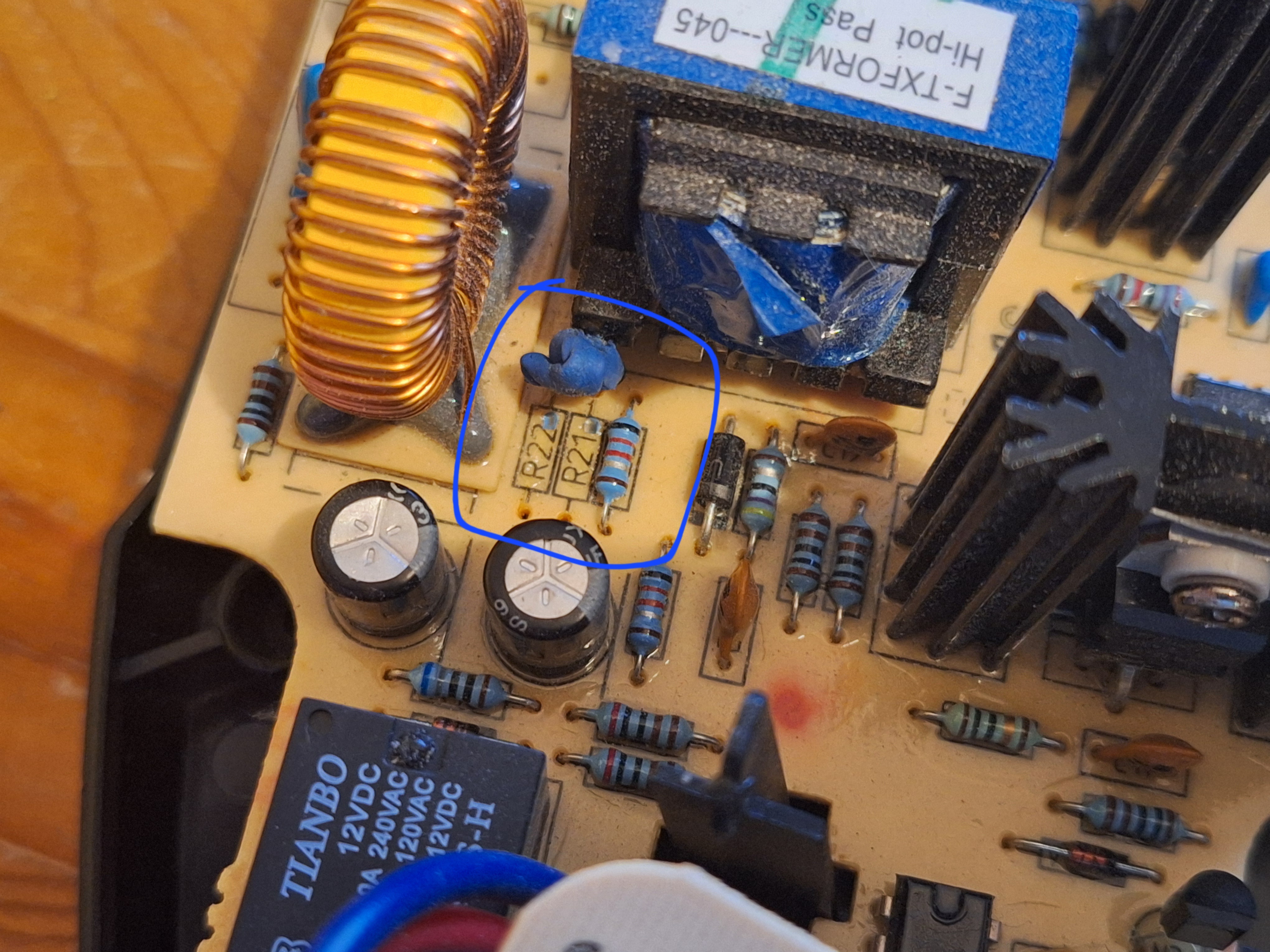 After disassembly of the charger body and removal of the PCB (no need to dicsonnect or desolder anything), locate the feedback resistors near the battery terminal.