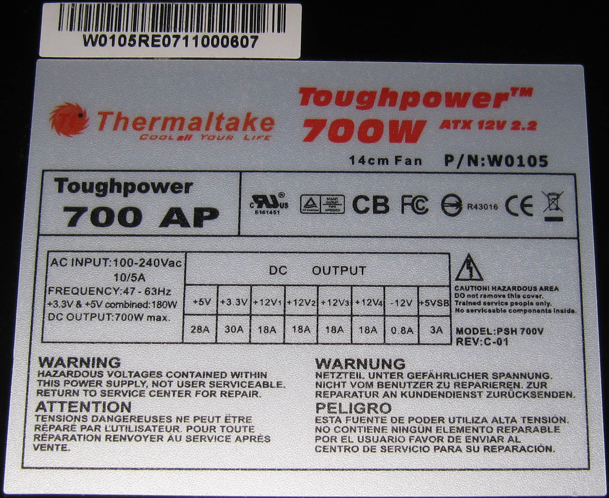 Thermaltake Toughpower PSH 700V (W0105) photos and datasheets: