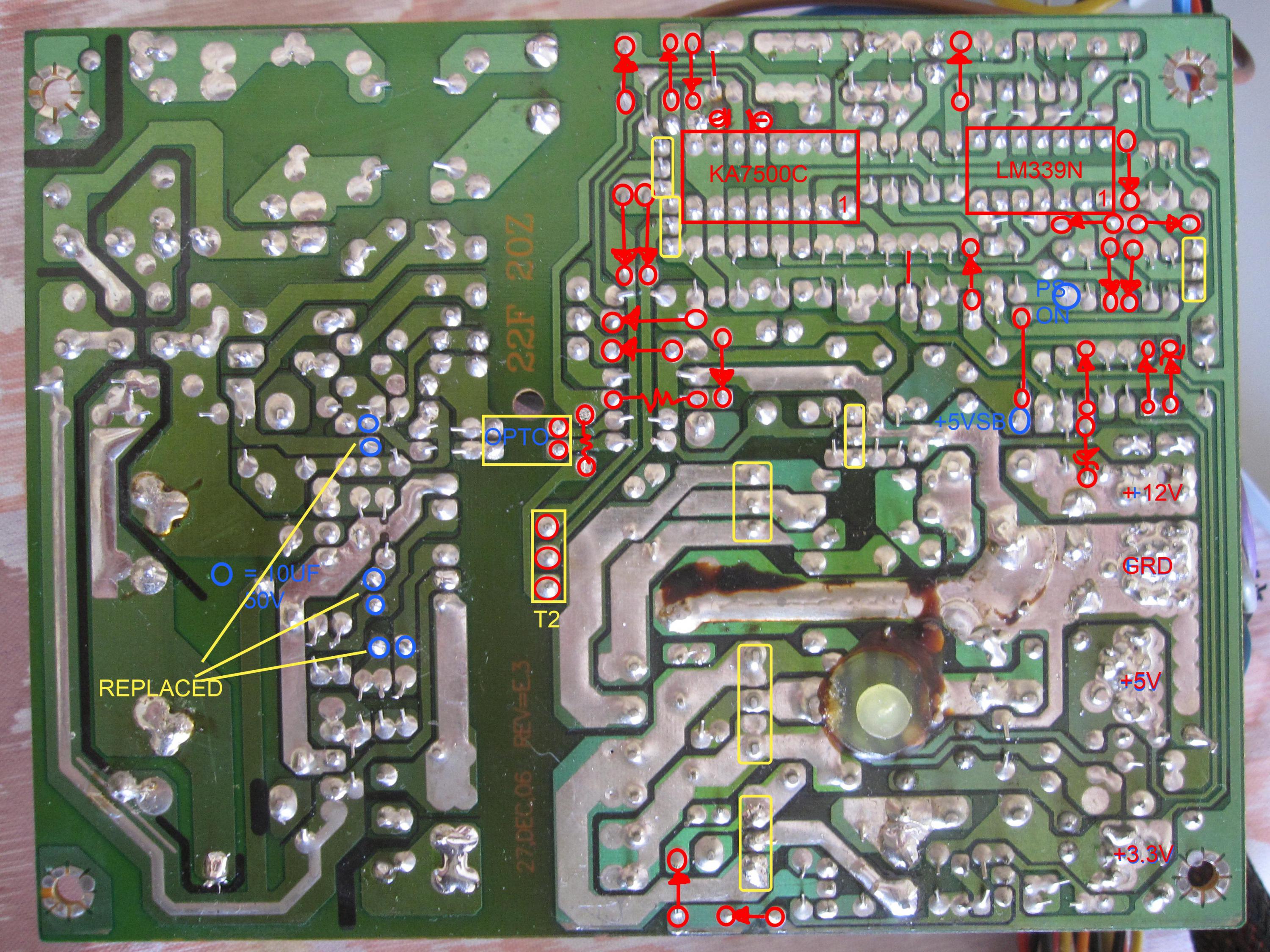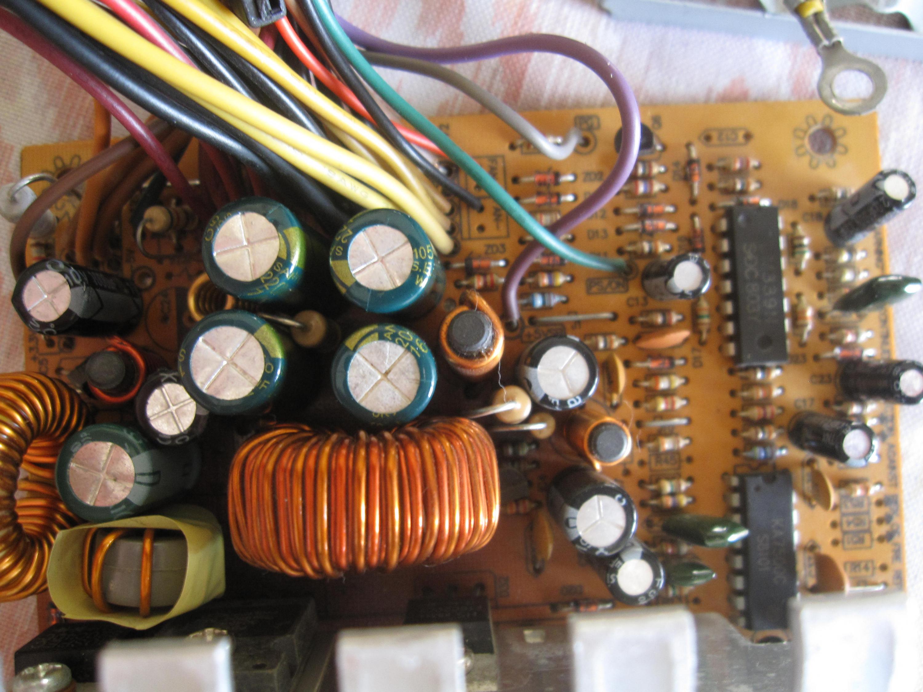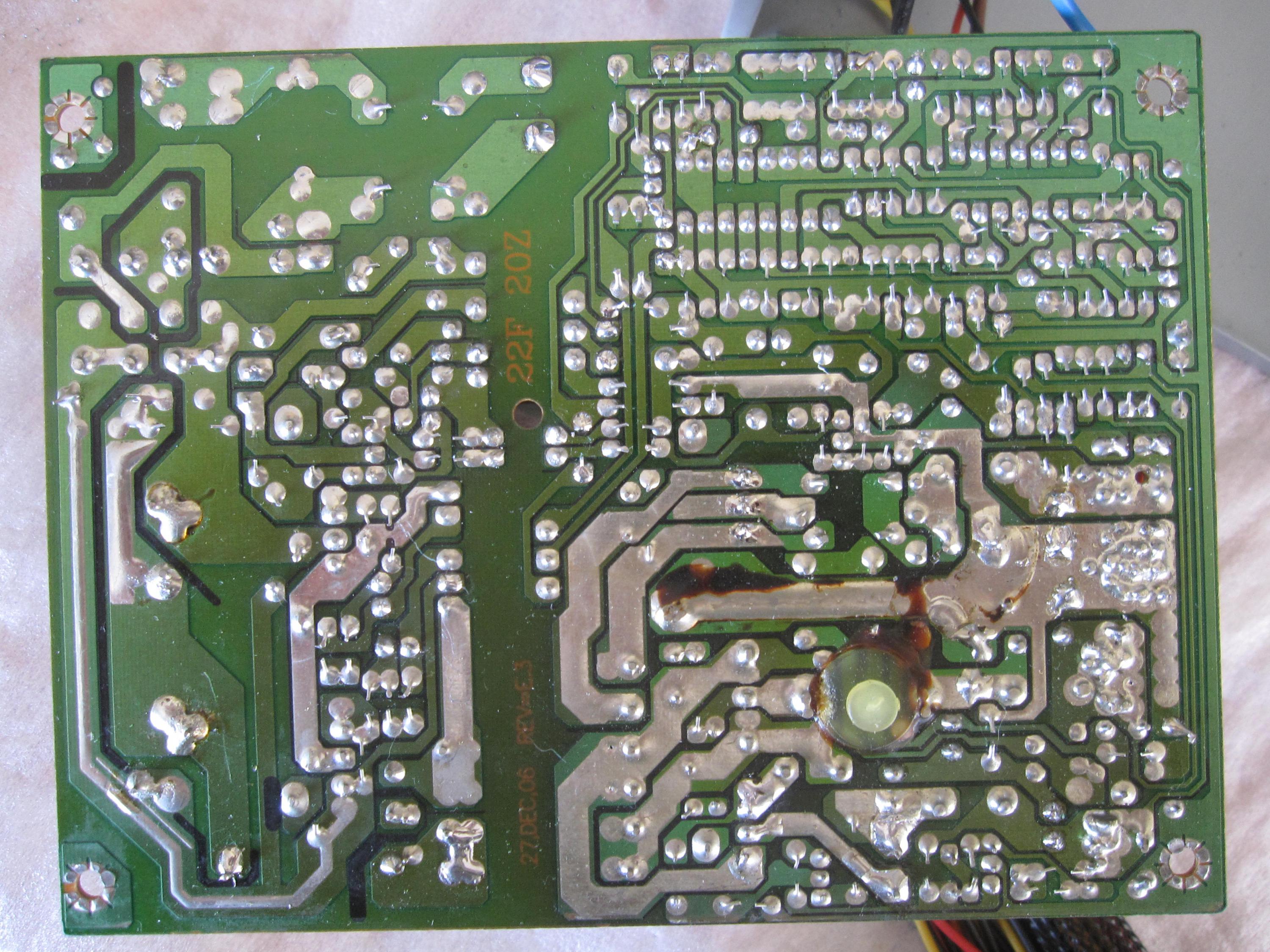 That PSU looks like it runs seriously hot. Note the discolouration on the PCB. Did this PSU previously have its fan fail?