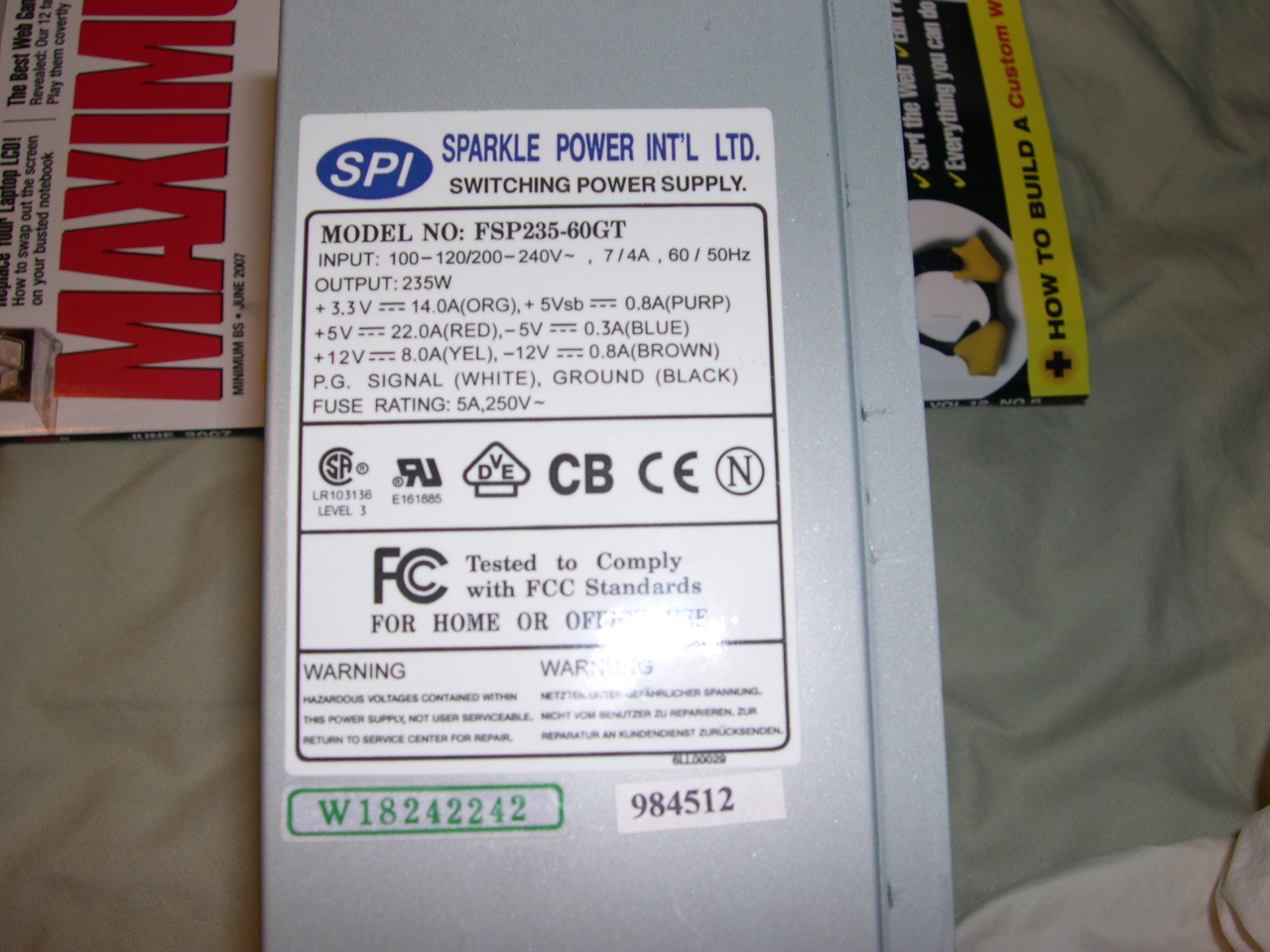 I decided to mess around with this machine a bit more and found that the machine powered up but the power supply fan did not spin. This machine was probably built from parts at my friends dad's IT department and the supply wasn't matched well to the machine. It seems that the power supply fan doesn't spin up because the motherboard doesn't have the right connector on it to give it juice. The motherboard also can't regulate speed on it because its a p2 motherboard and they just didn't do that back then. Is there any way to trick this fan into coming on. I soldered a new connector to the cut wires and connected it to a fan header on the motherboard. It still won't spin up. I think the heat build up may be the cause of the faulty -12 v rail. Any thoughts? I think I might just give this machine a different supply since it seems like a nice old rig. The motherboard is Intel with Nichicon caps and it has a nice adaptec scsi controller and two 4 gig scsi drives. I put a matrox dual vga card into it and I think it will become my ultimate Diablo Warcraft II rig.Comment