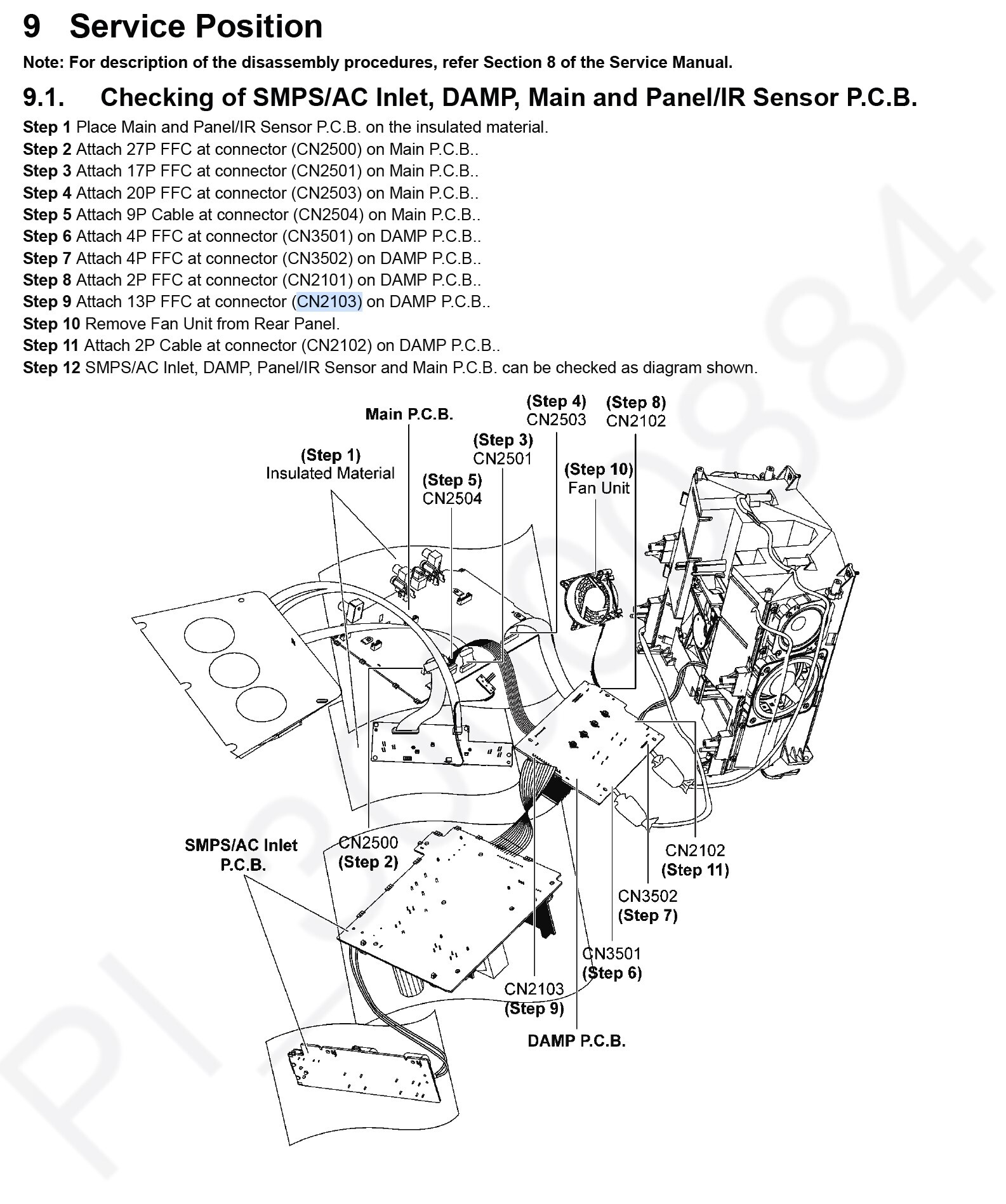 Tried to diagnose it as best as I could and there's no power on IC1201, positive gate voltage is needed to turn on the FET. VCC on pin 7 is missing and I don't follow schematic on how this is generated.