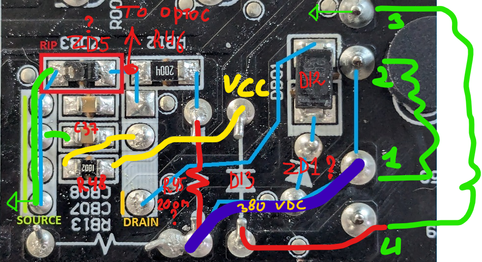 The other part is a zener diode and it's top went to jesus, so I can't read the marking.