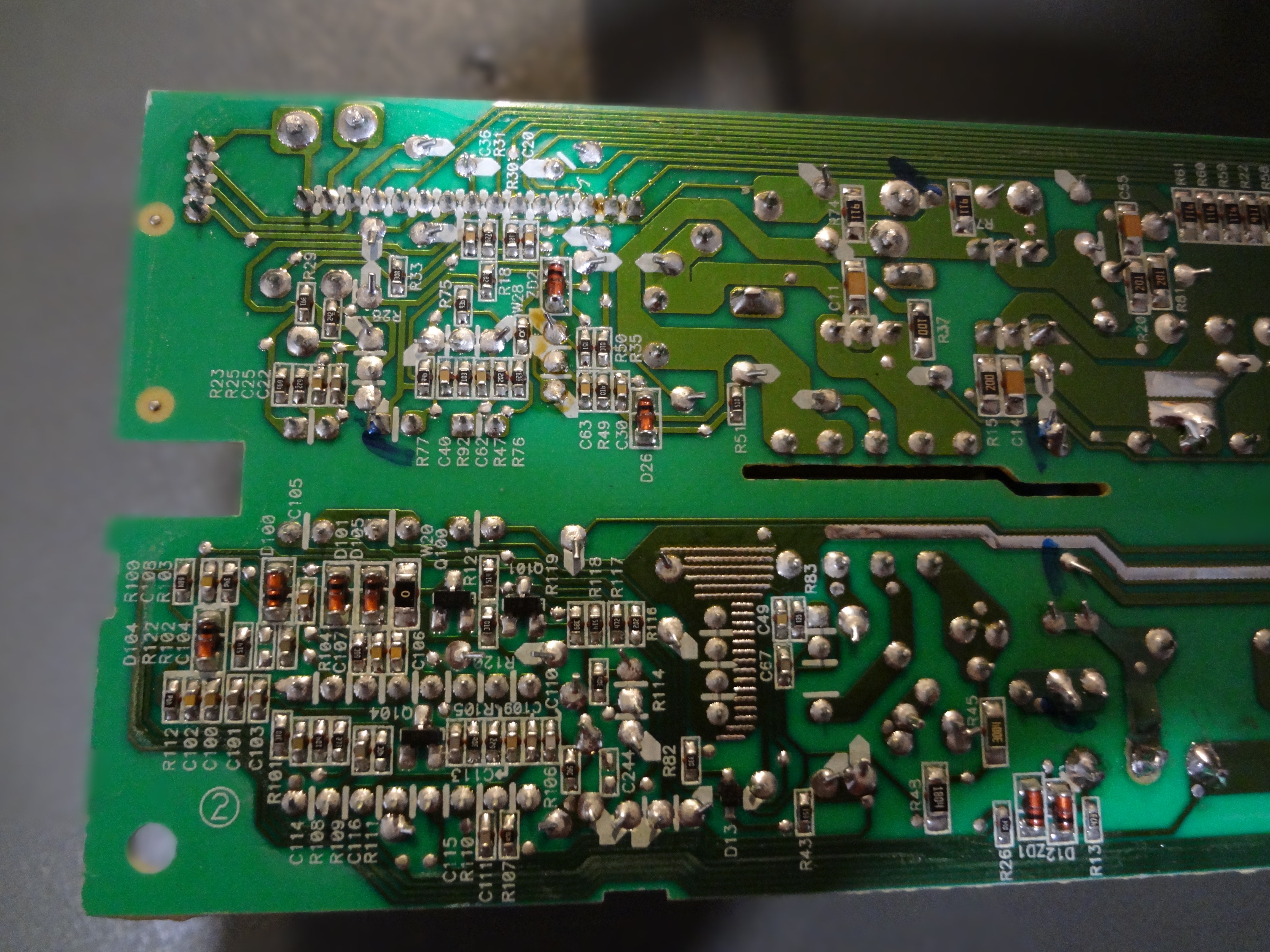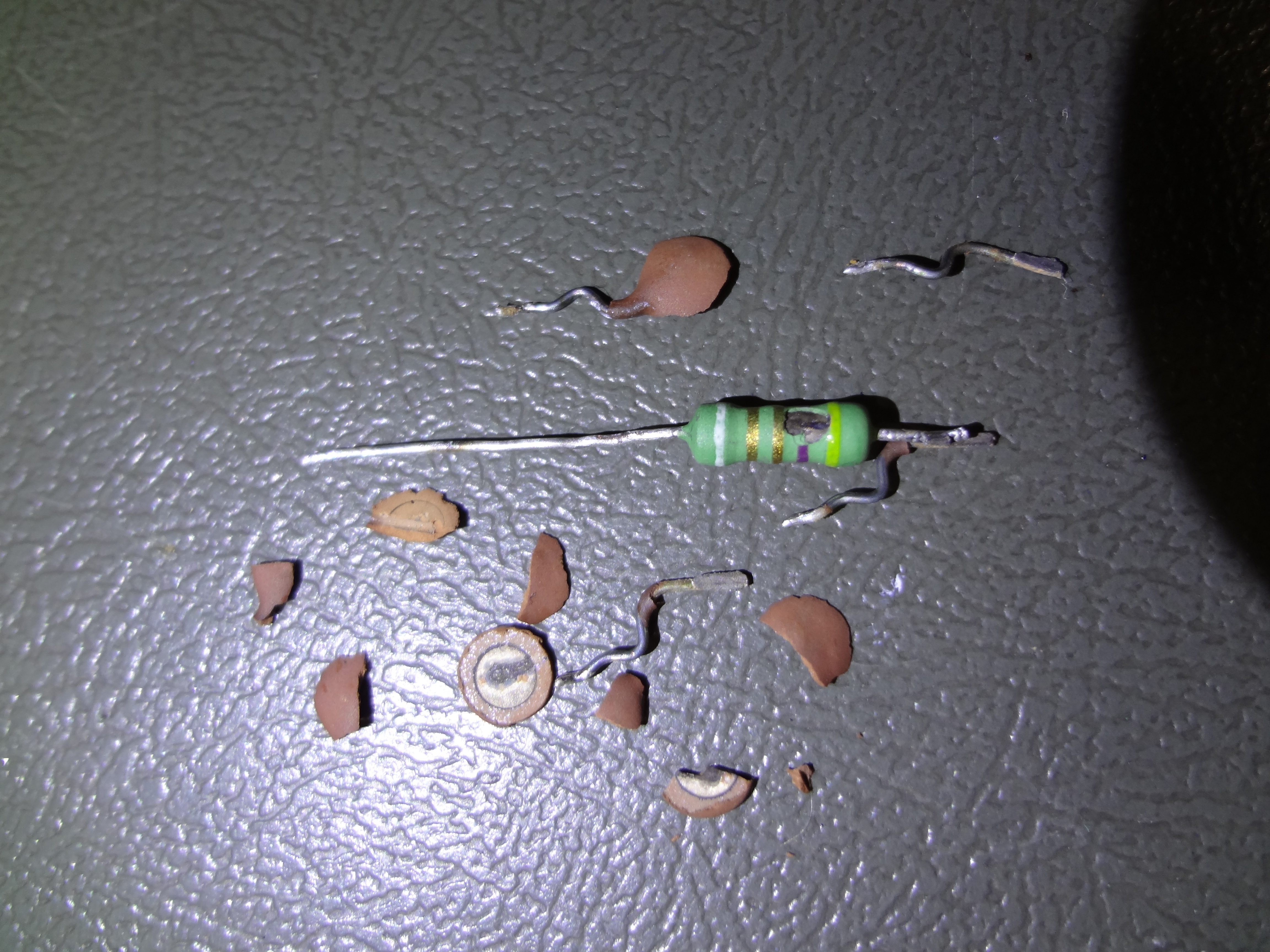 Here are some pics. There is no printing as far as I can see. Also there was power on both sides of the resistors and caps so not sure what that means.
