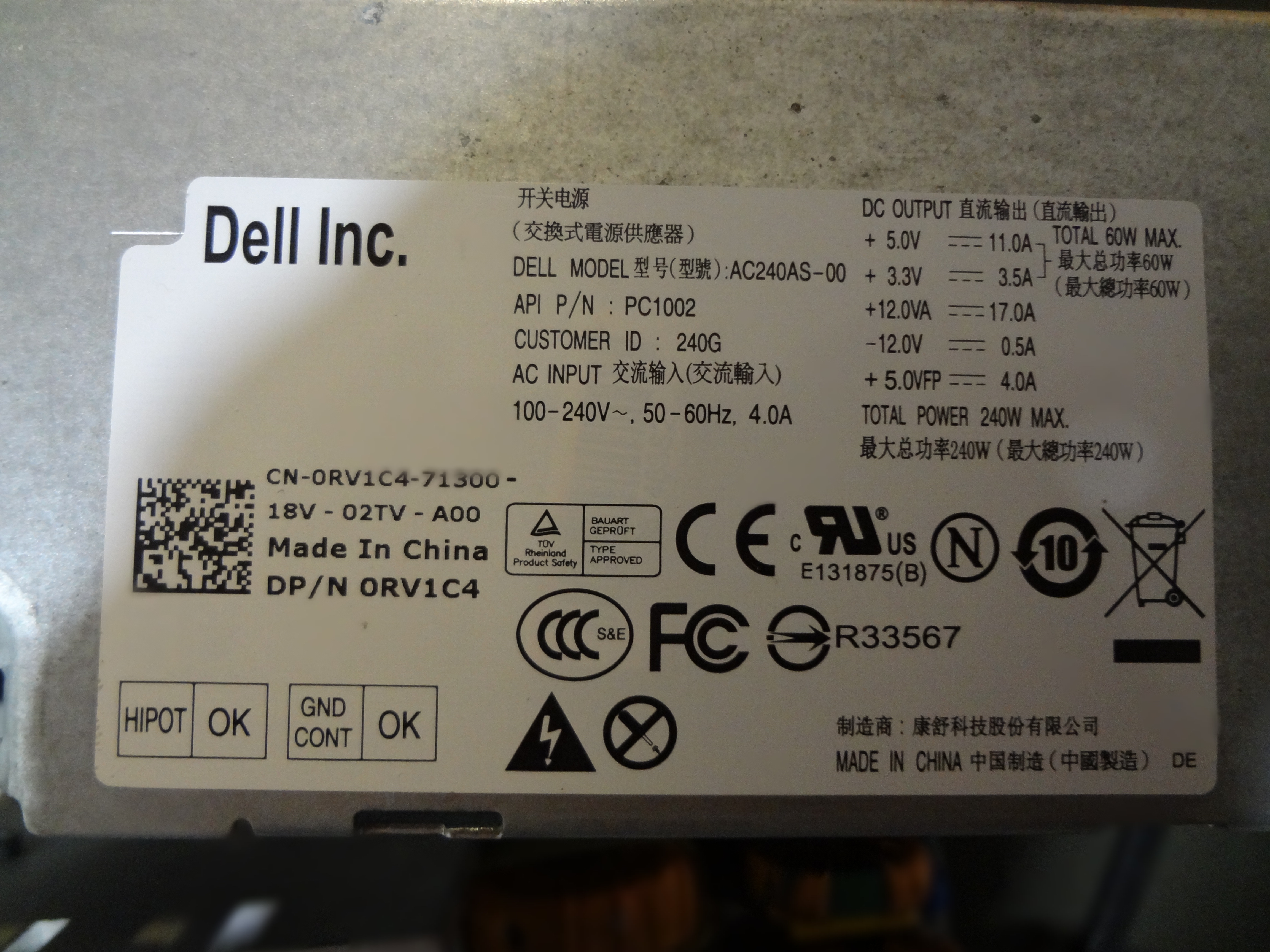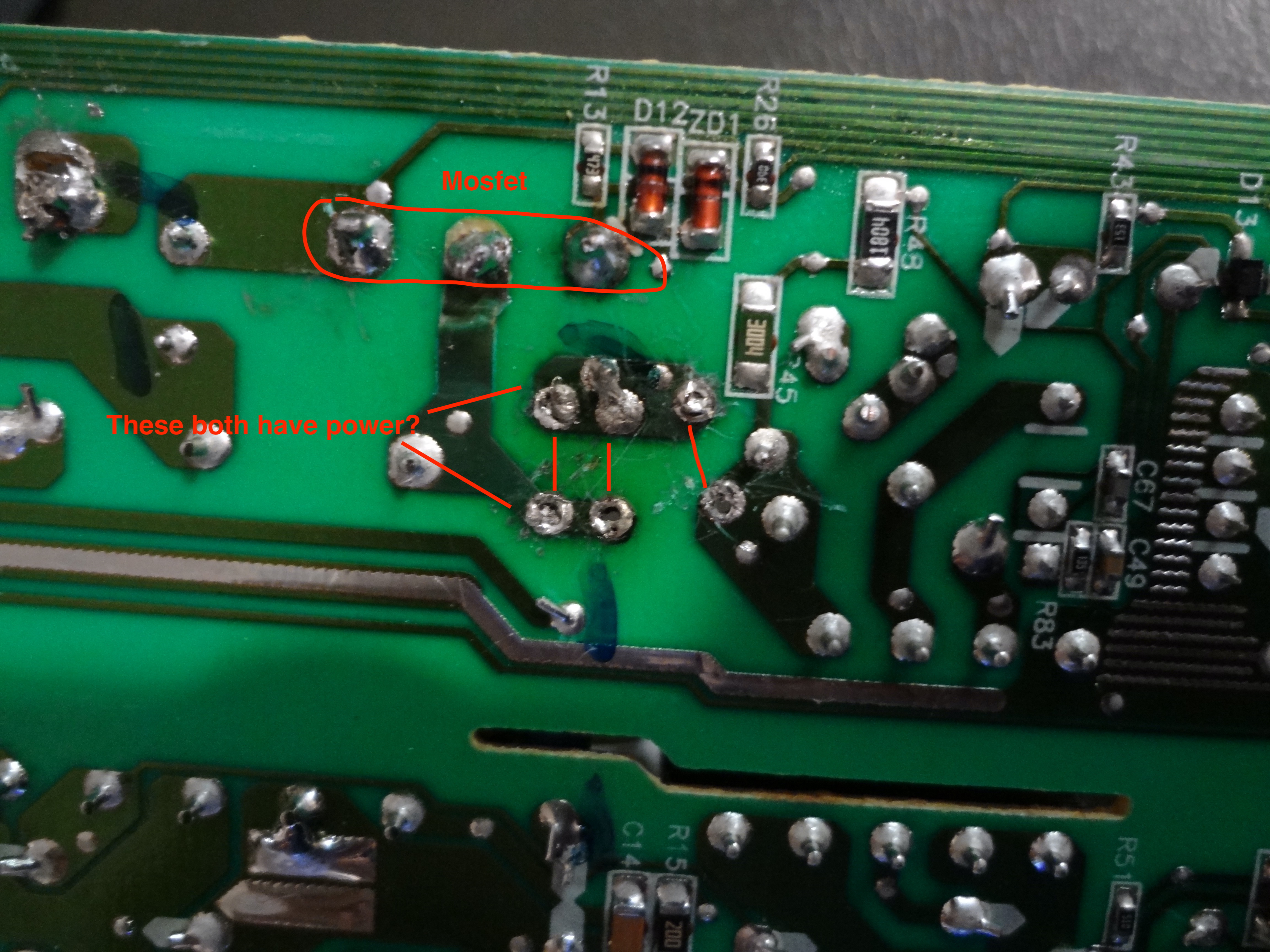 I have 2 Dell Optiplex 790 SFFs that both have dead power supplies. When I plug them in I can hear a spark so they are at least drawing power. I've checked all the power rails and there's nothing whatsoever. The self test button on the back does nothing also. I took it apart, plugged it in and probed the back until the voltage stopped at a mosfet. Is the problem with the mosfet or something else? I de-soldered it and when turned on it stays closed for about 4 seconds before opening again (tested with a multi-meter). The mosfet is this: https://www.indiamart.com/proddetail...047252730.html . Any help is appreciated.