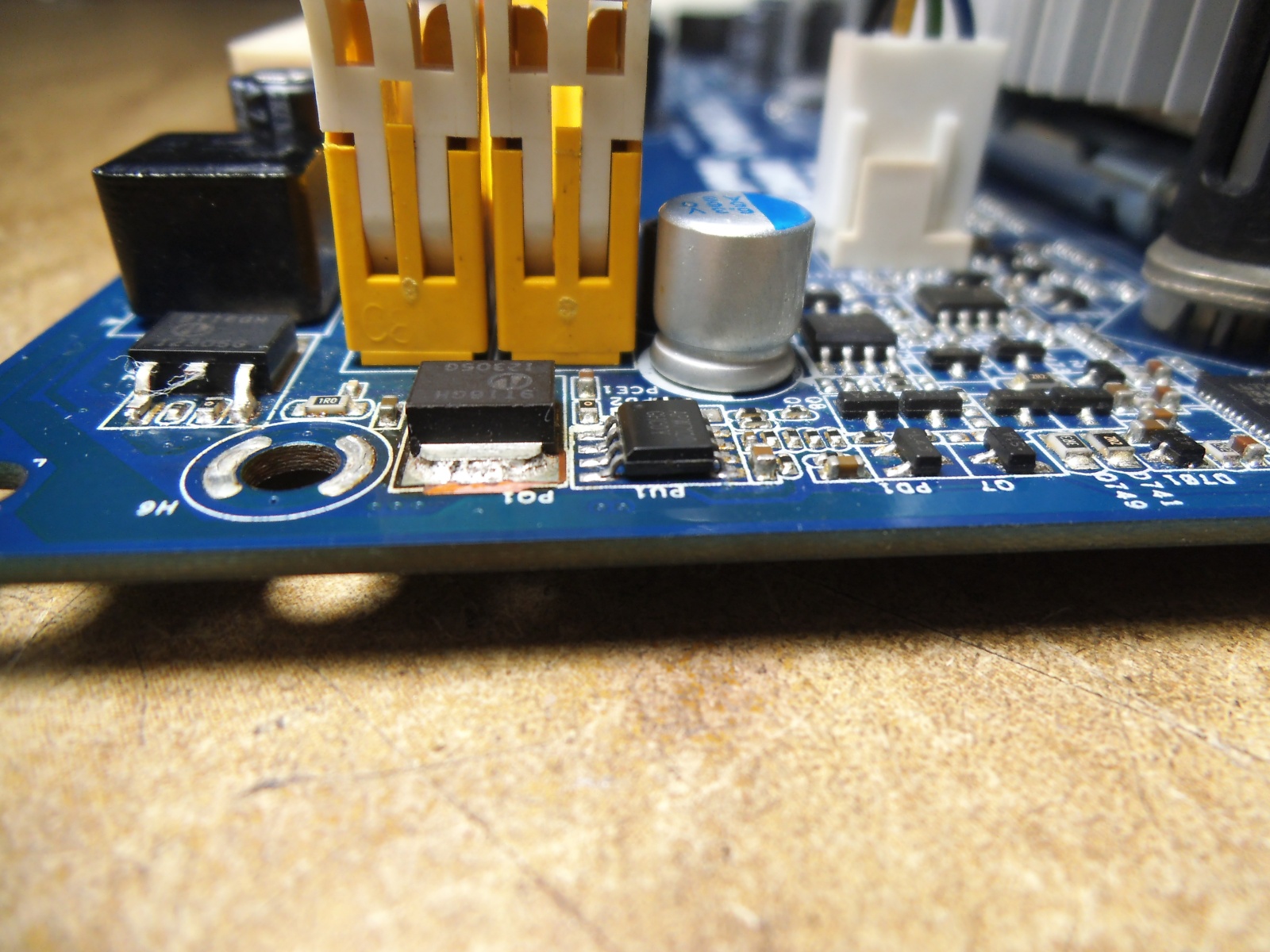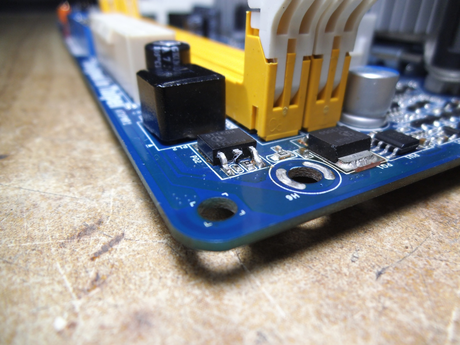 Received this computer for repair a few months ago, symptom was no-post, one of the two mosfets from RAM VRM had a leg desoldered the other had its pad lifted and both were making bad contact, the reason was a shorted USB port and as the Two-transitor circuit lacks the most basic protections it's output was down to 1.2V, the poor VRM was doing as much as it could to output 1.8V from a 1.2V source and almost goes seppuku, thankfully for customer once the mosfets were soldered and P/S replaced the board worked perfectly, how everything else attached to 5VSB survived and why APW7120 didn't shut down? I don't know, but this board could easily be dead.