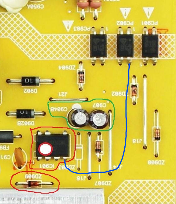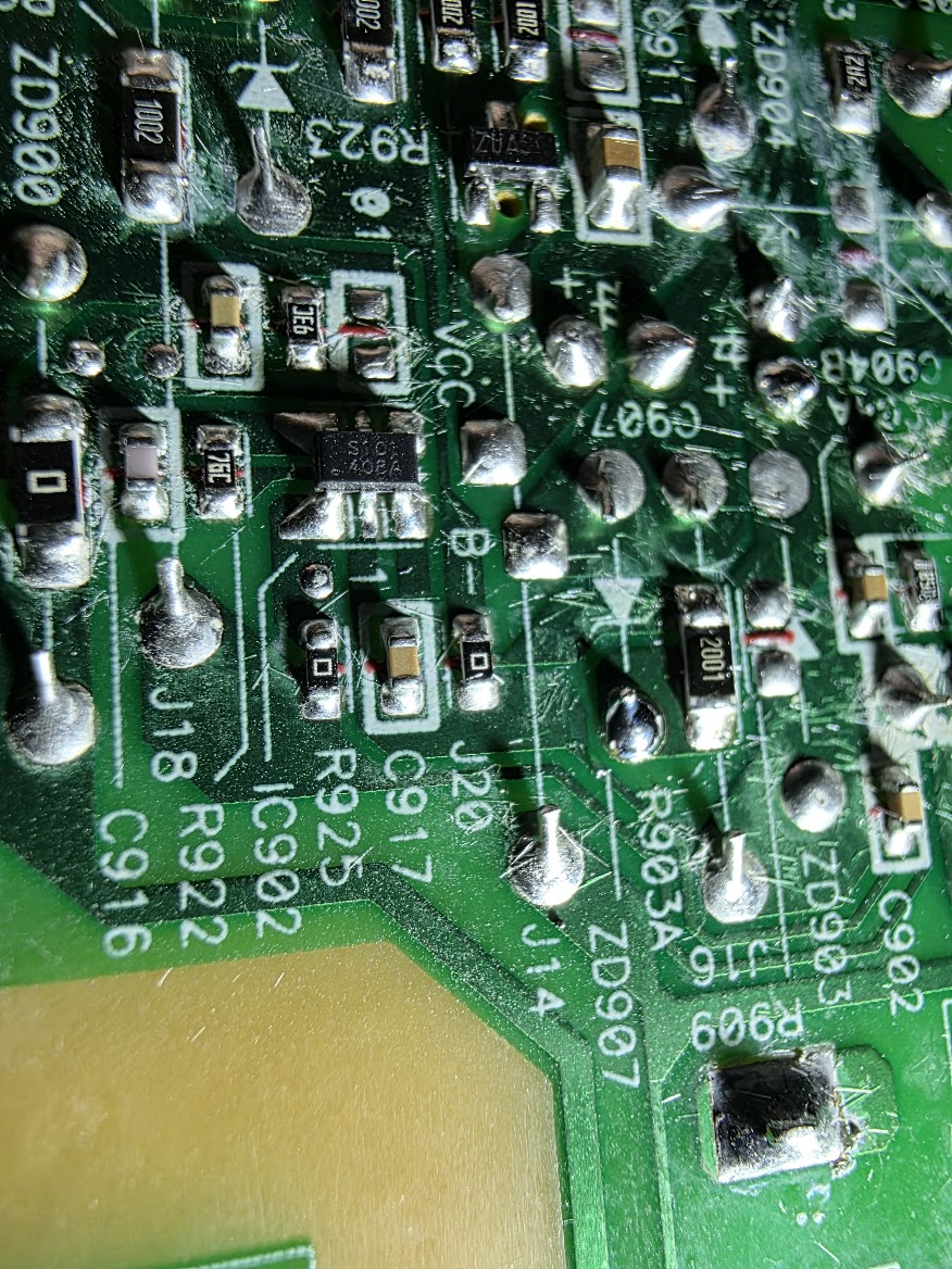 Also I would definitely recommend cleaning the flux around IC901 given it runs from the high voltage supply.