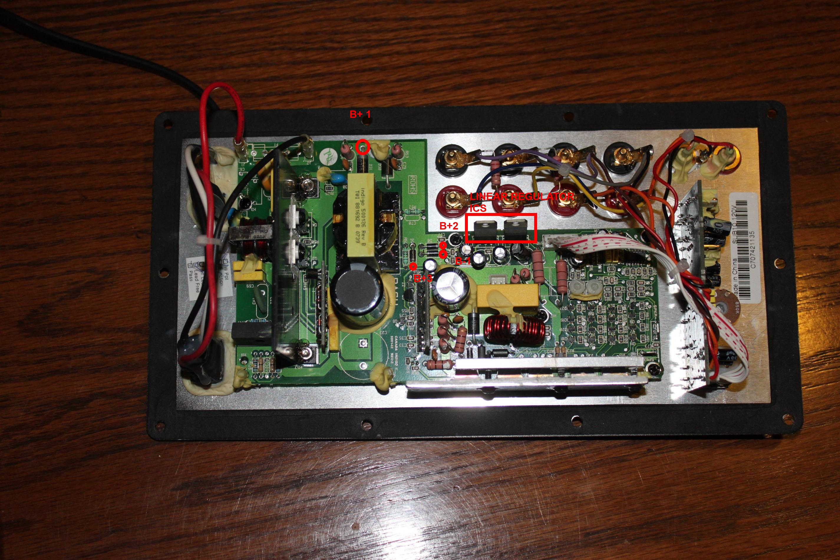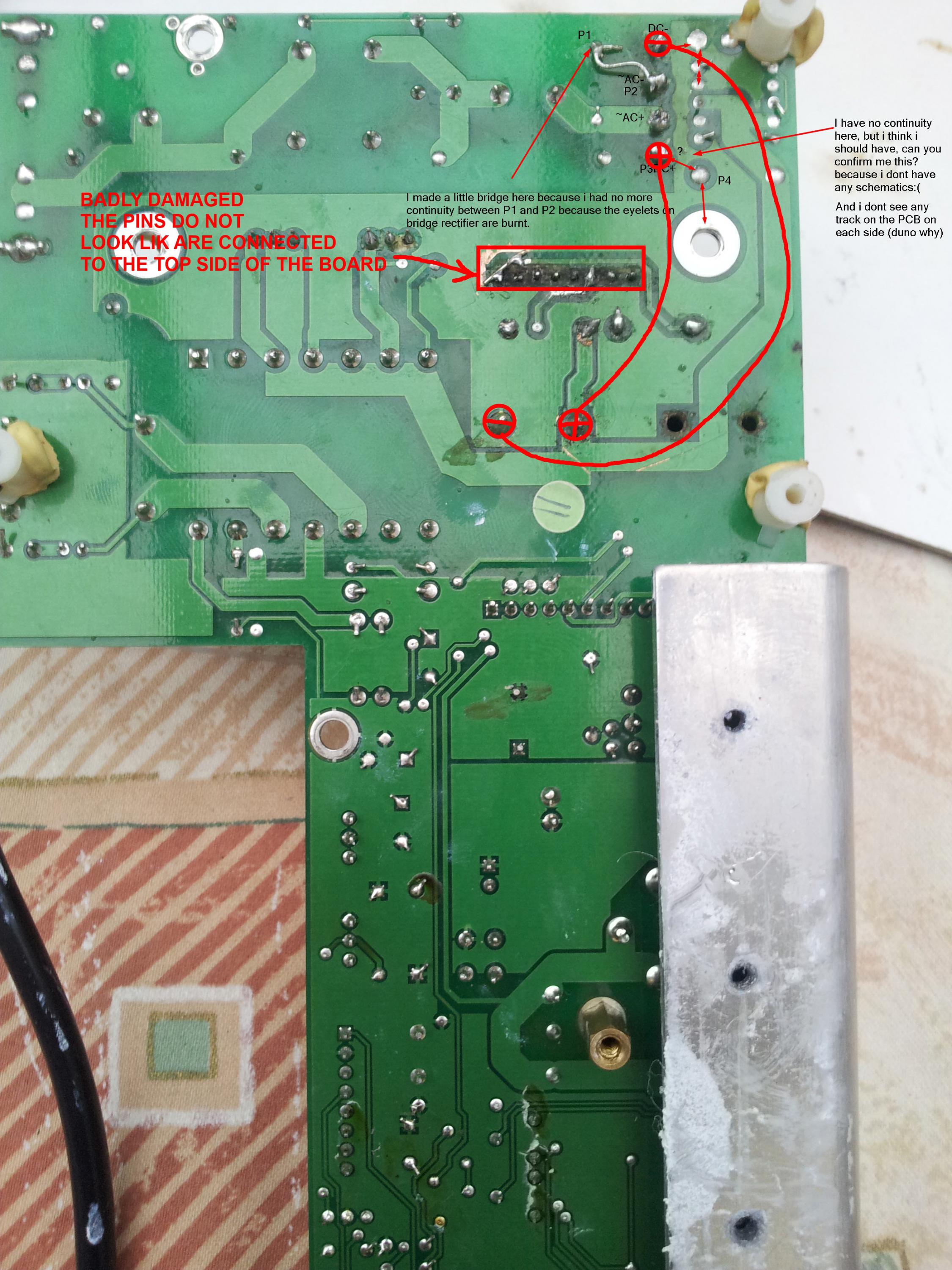 Im currently trying to repair the cut tracks before i try to switch on. Ive managed to find out another kipsch service manual, you can see on page 18 the primary side of the amp here: