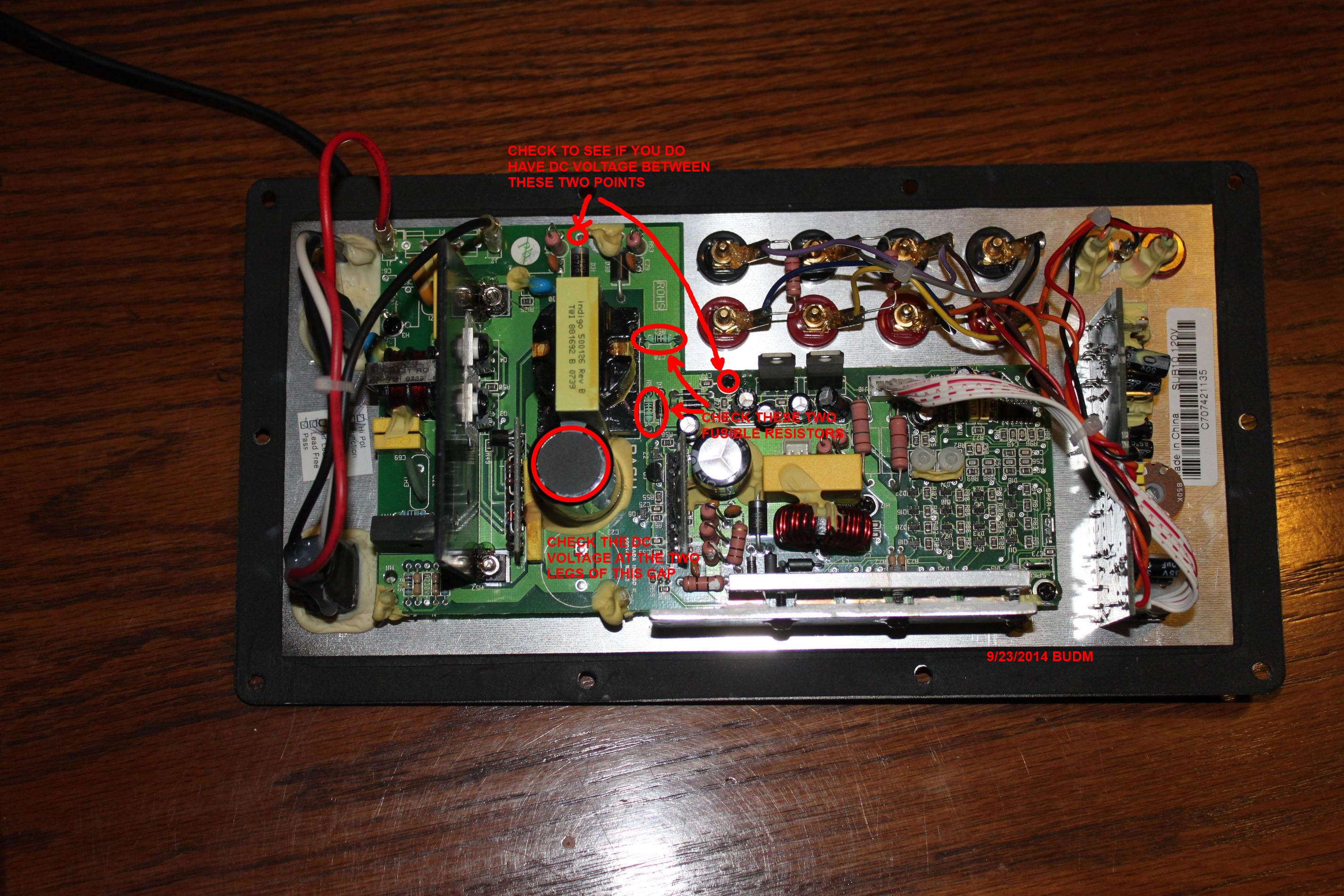 Did you also check the DC Voltage at the test point as shown in pic# 2? and did you check the fusible resistors?