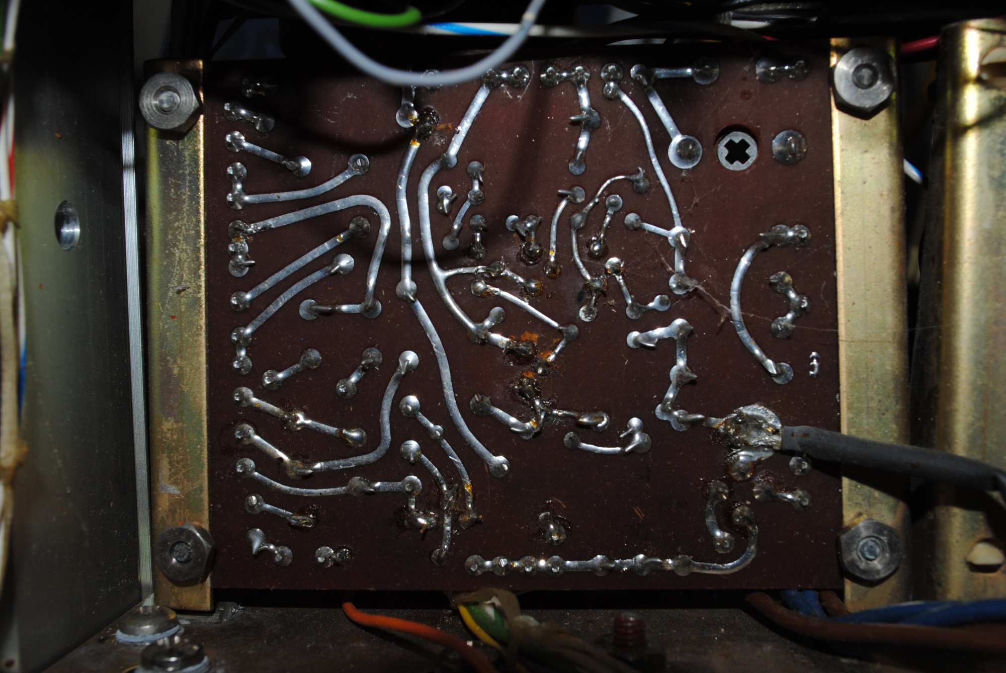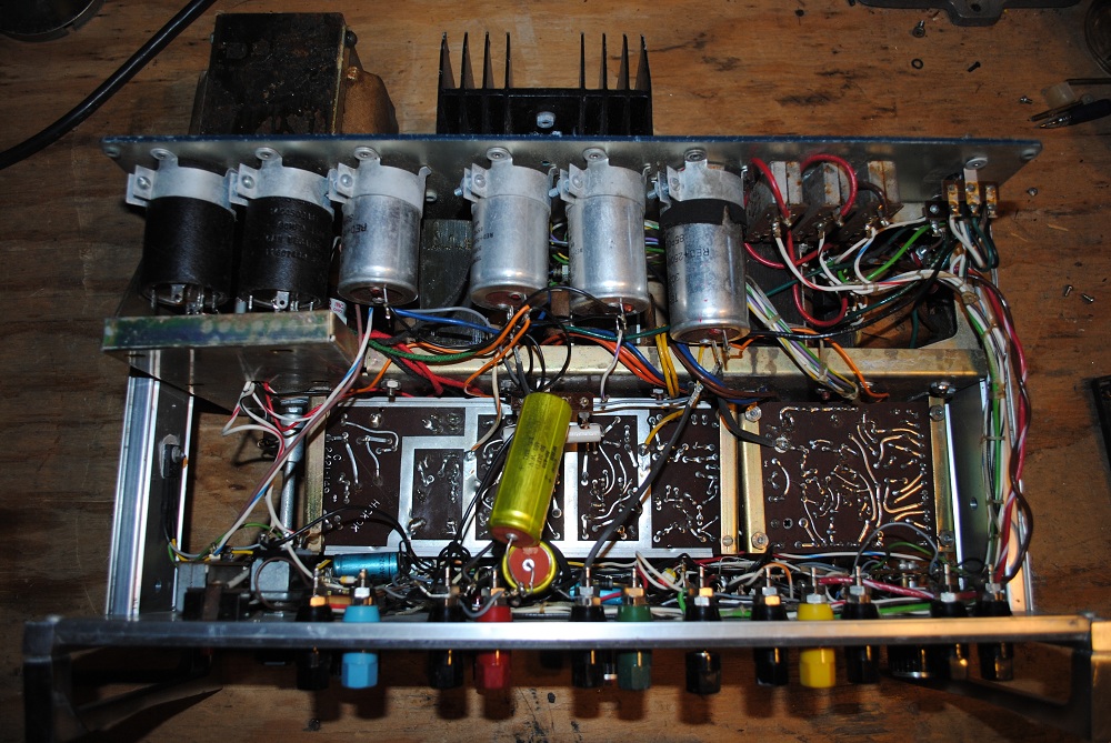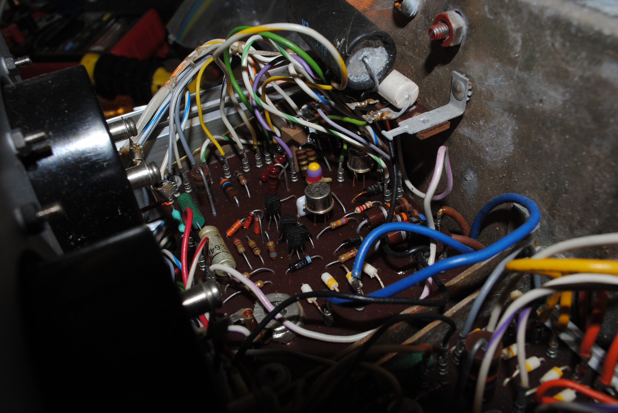 The horrible wiring on the power transistors might be from a previous repair, I know the sockets that were used for TO-3 transistors would get bad contacts after a number of years. This especially causes problems in audio amplifiers xD