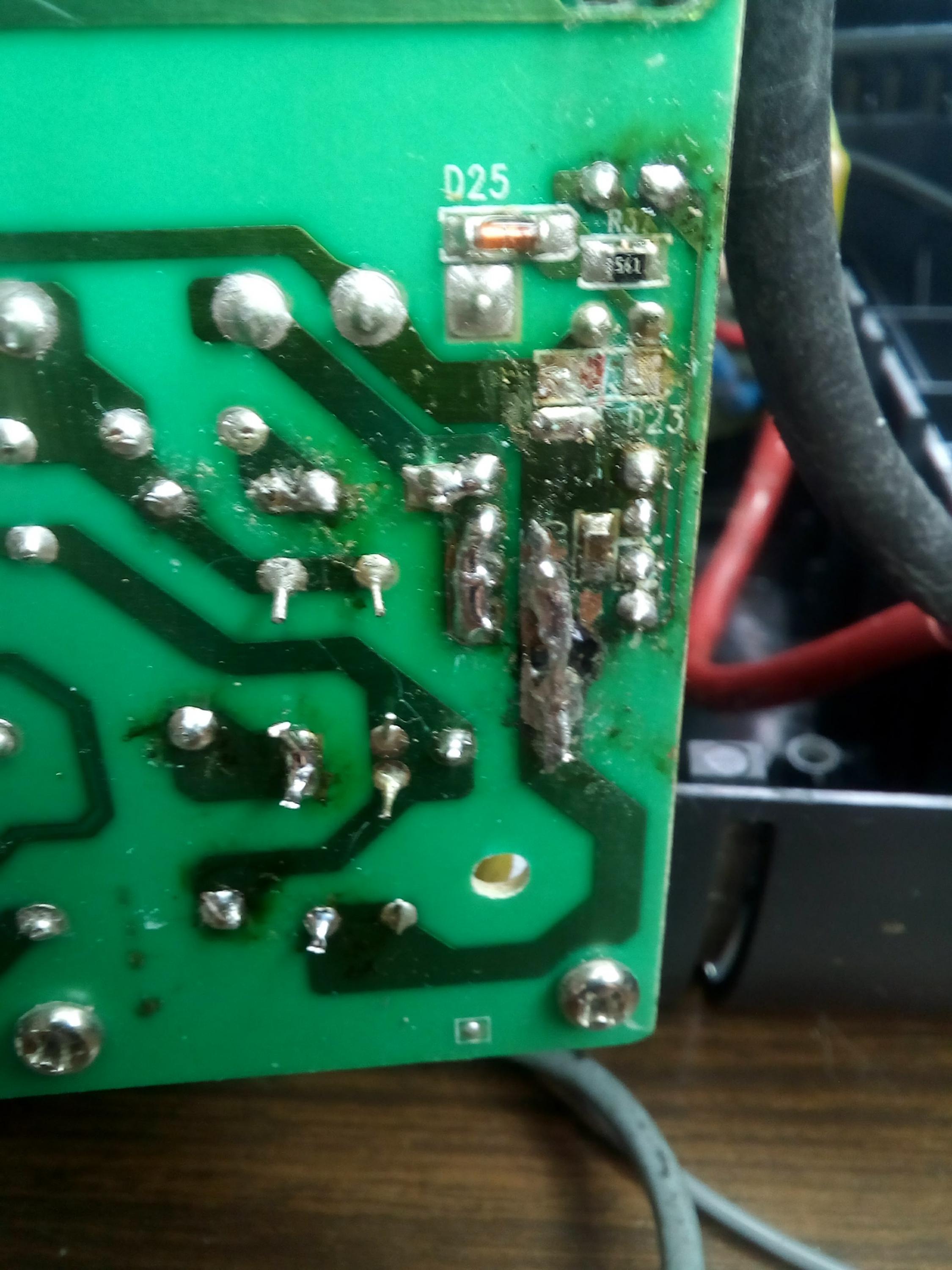 They burnt up due to the MOSFET Q29 and more likely the SMPS IC U7 is also damaged when the MOSFET failed.