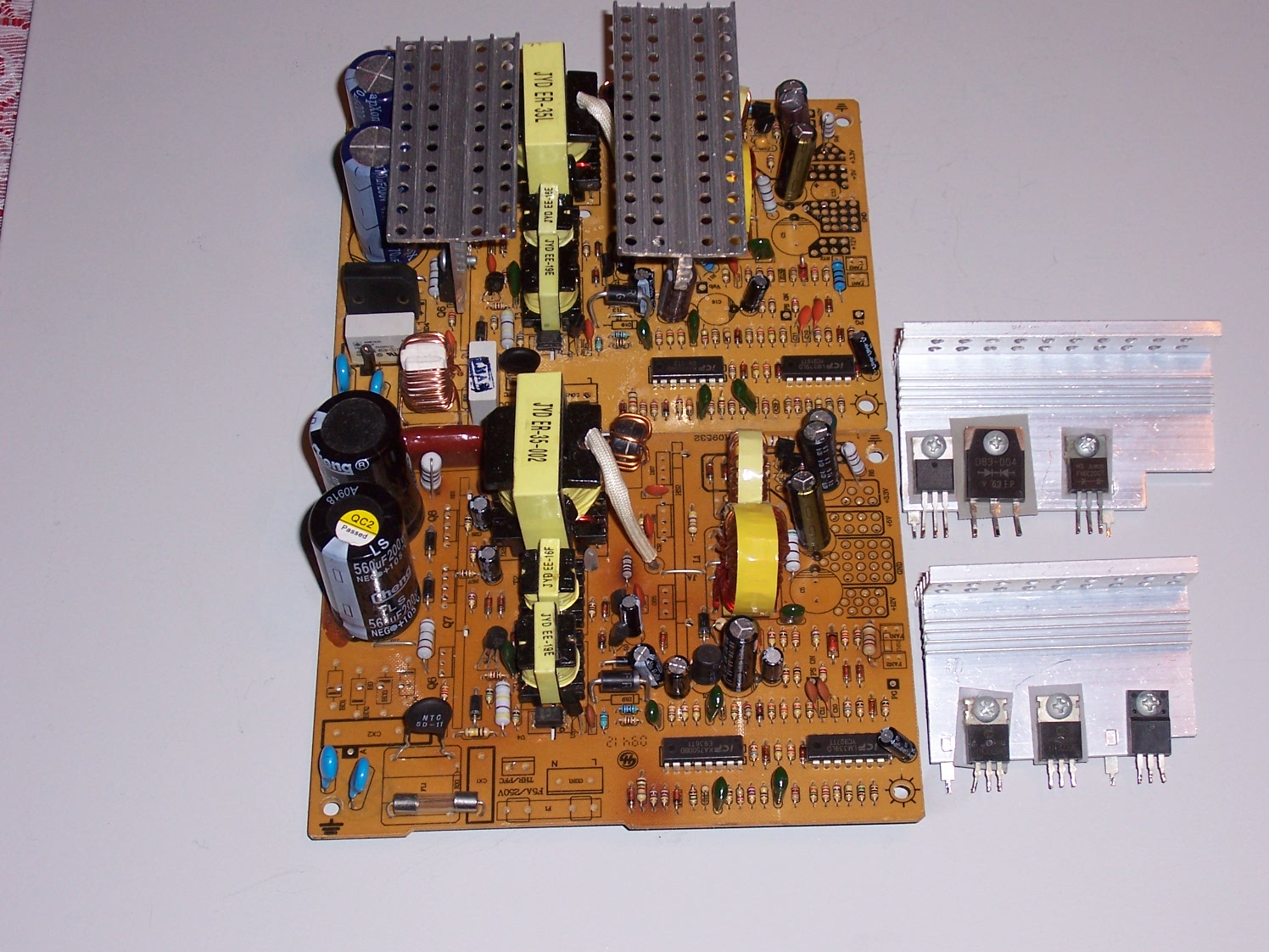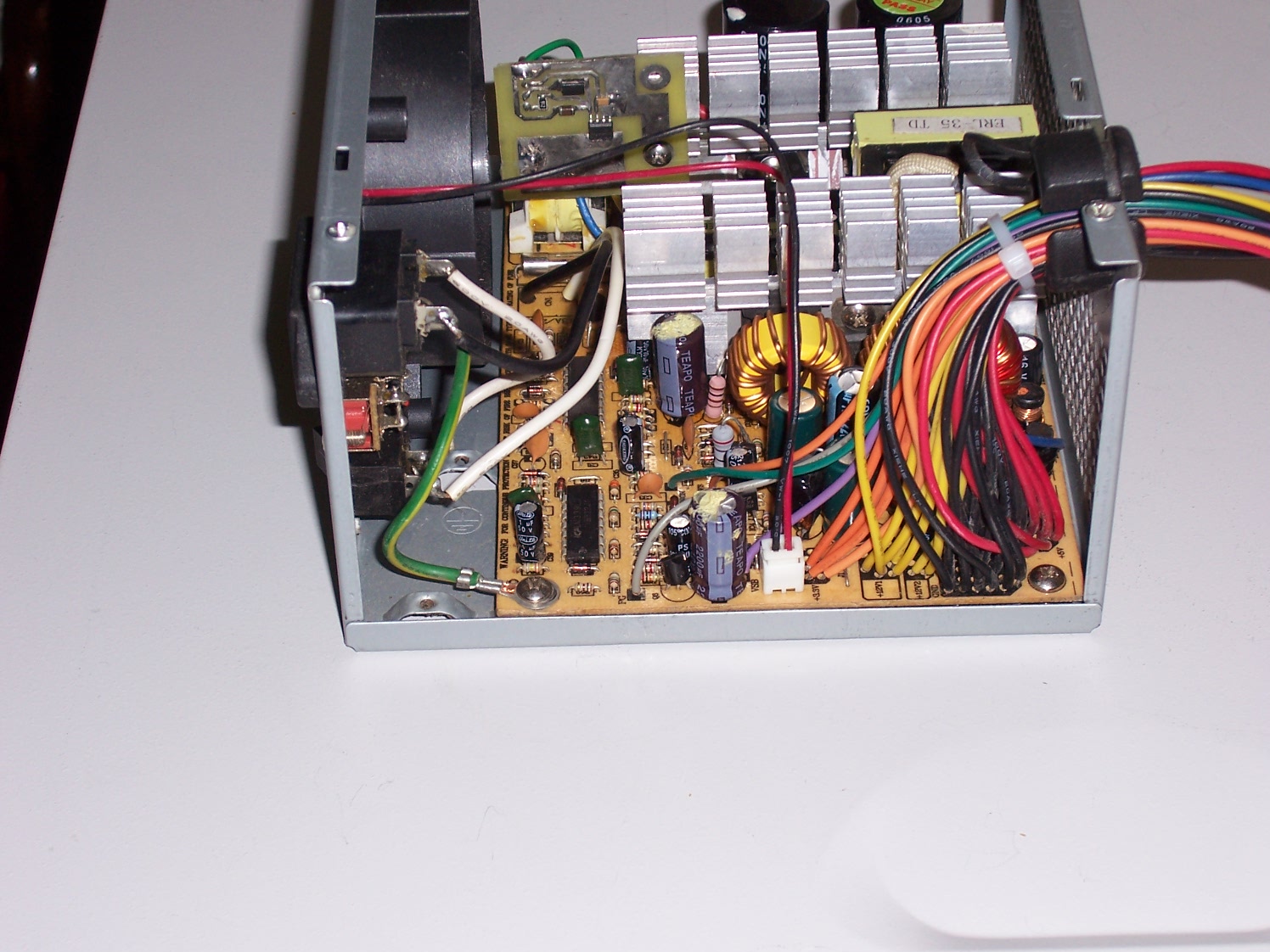 Looking at the pictures, I see some reused Teapo and Jamicon caps. These are from Bestec PSUs, aren't they, hehe