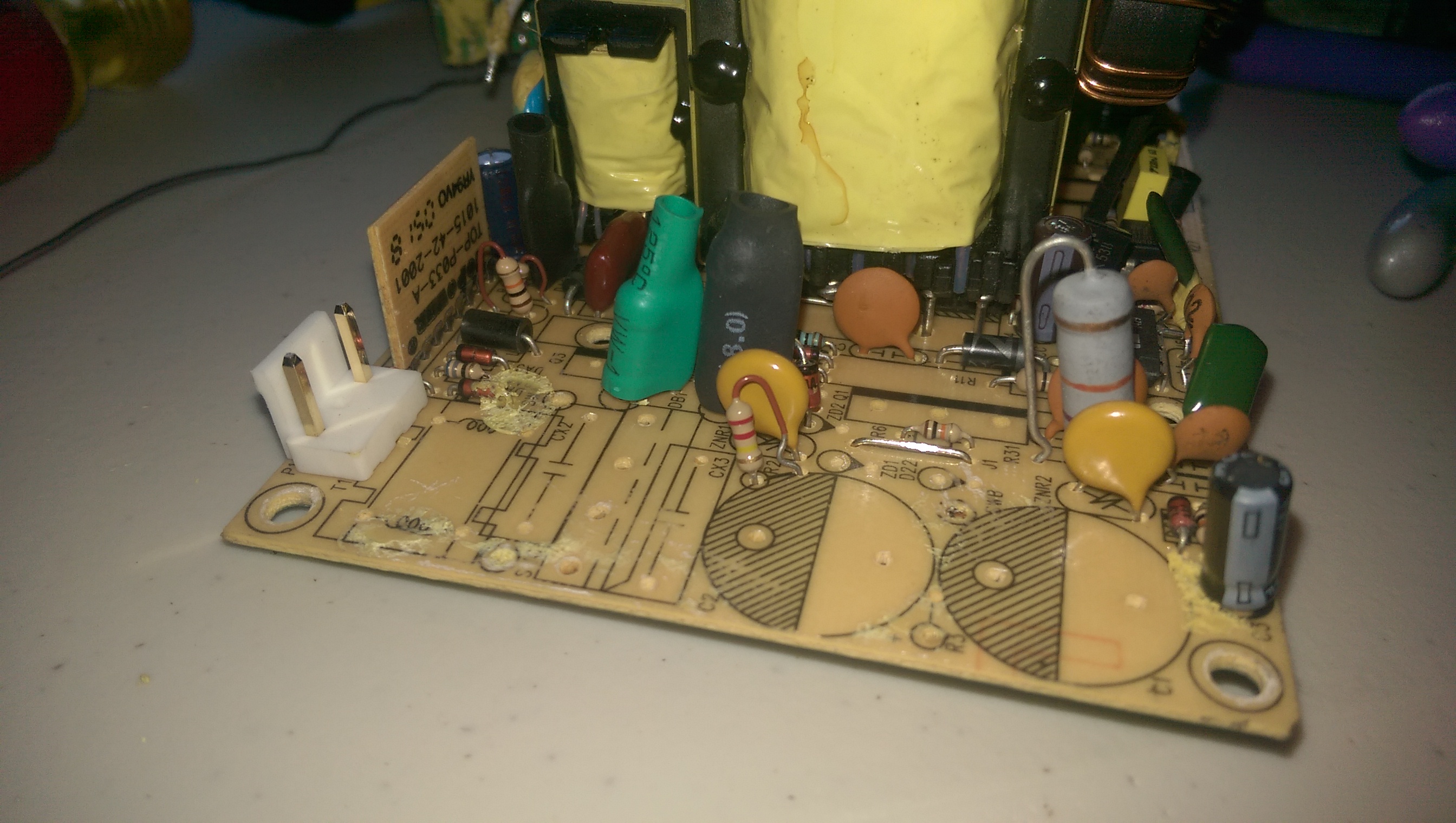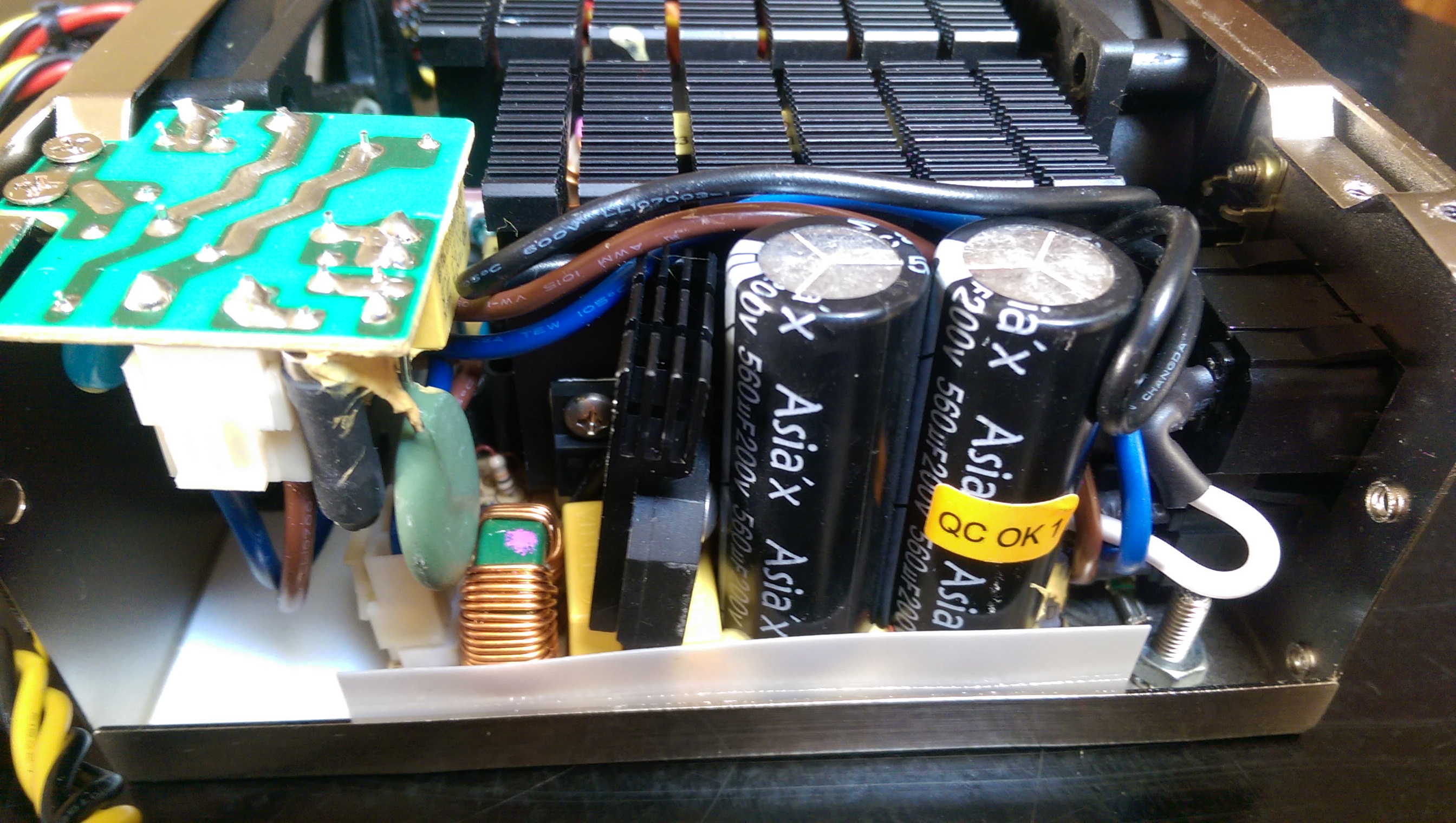 I'm not sure how none of the capacitors are bulging. Either this thing got almost no use, or some have failed without bulging. There's no way those decade old Asia'X, Koshin, Fuhjyyu TN, and Teapo SEK are all okay. This unit runs hot. It handled a 130W load no problem but it was kicking out quite a bit of heat. Not only will I have to replace all of the capacitors, but there's a fair amount of glue that needs to be removed. I'm guessing if the unit needs that 10W resistor, then at least swapping around the minimum load resistors will reduce some of the heat created.
