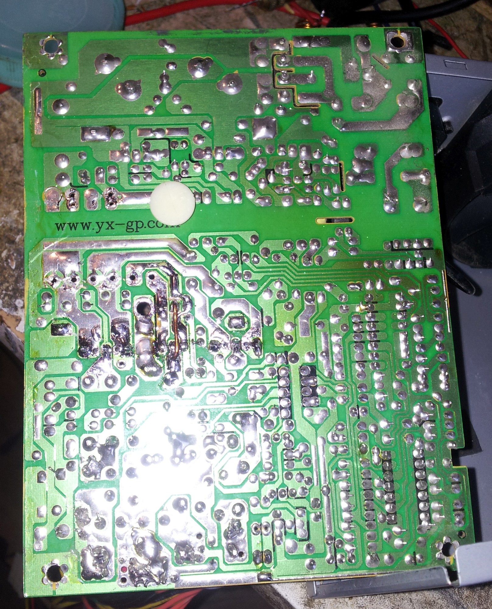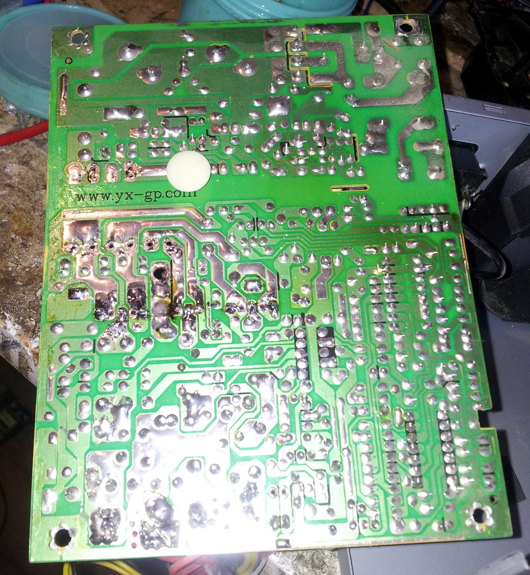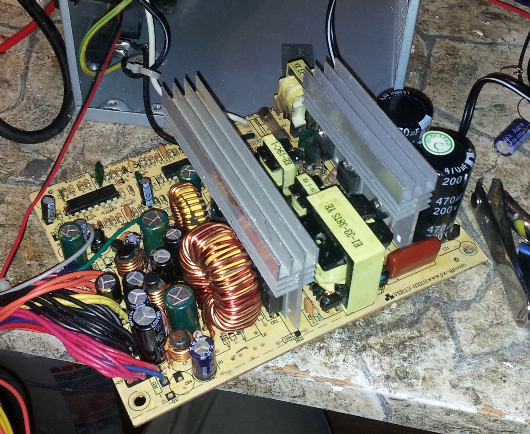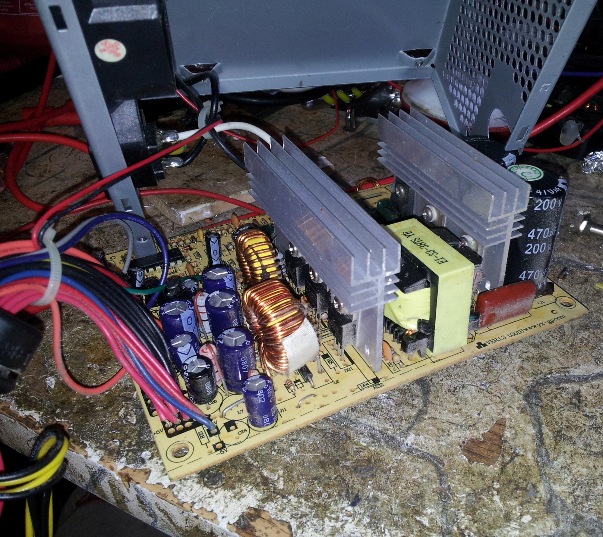 I lent him my old hard drive for a while until he bought the 1TB drive. When he bought that, i suggested that it might not be a good idea to leave that much data at the mercy of that pile of turd, since he intends on working on that computer (Autocad, 3ds max and Photoshop). When he showed me some of the units he was looking at, i proposed that instead of him spending $20-$25 on another PSU that will still be a piece of crap, he'd be better off paying me that to upgrade his current PSU to better parts. And here we go.
