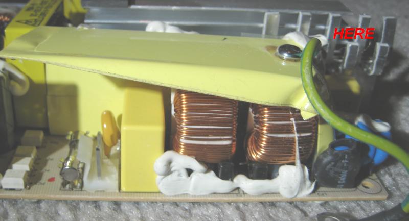 The largest capacitor seems to have vented its electrolyte all over the inside of the PS. (messy and smelly...)