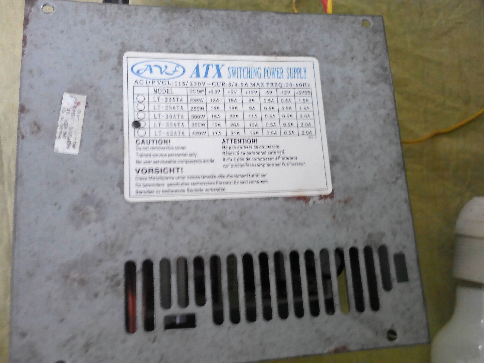 I got a dead AVF brand china made switching power supply from a friend recently who previously used in on a pc. It is labelled as a 350 watt power supply suitable for ATX type pc. I opened the case and did not find any burnt marks or bulged caps.