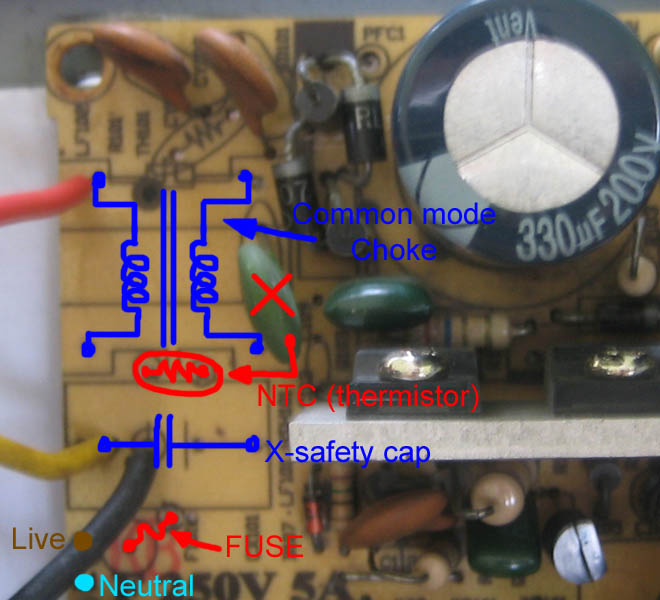 I have not put back the six removed caps in the PSU due to waiting replacement of the above shorted diode. Once this diode is replaced and the six caps soldered on pcb and put a load(maybe a 12V DC fan will do ?) and the series 60W bulb still connected, is it time to power up AC to see if the 5V purple wire will output 5v DC?