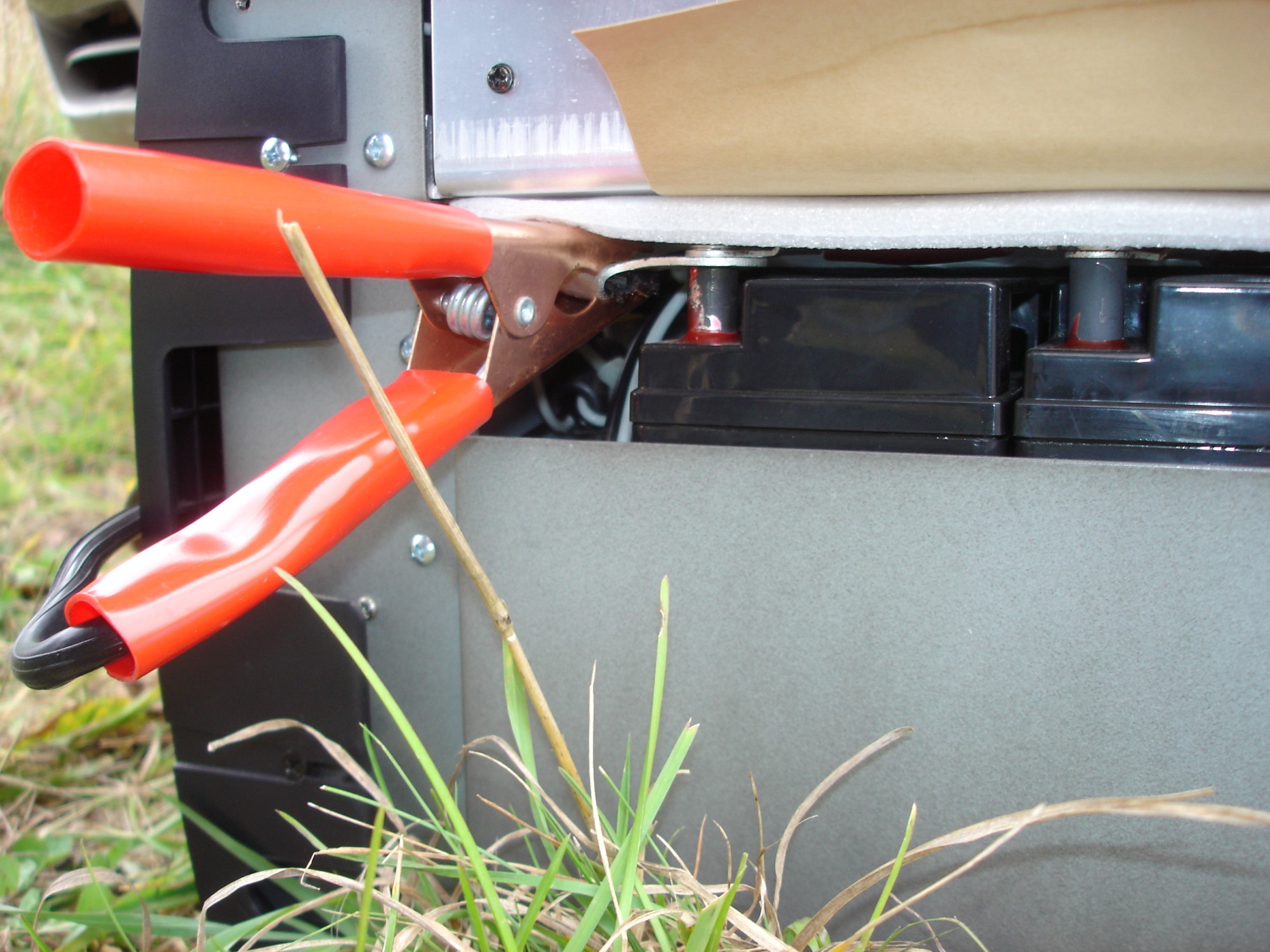 It's an old unit, with maybe 10yrs service as a sump pump backup, so the batteries inside are not holding a charge anymore, but it does still supply non-sine AC power when connected with booster cables to a running automobile's red battery terminal and engine block.