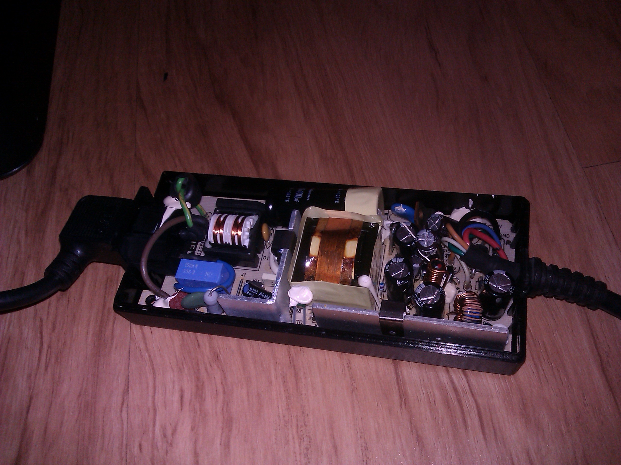 Disassembled, investigated. The PSU looks OK, no burnt spots or parts. Providing the picture. There is one indication of a failure, fortunately. The place with caps and the regulator is ''ticking'' (not like a bomb