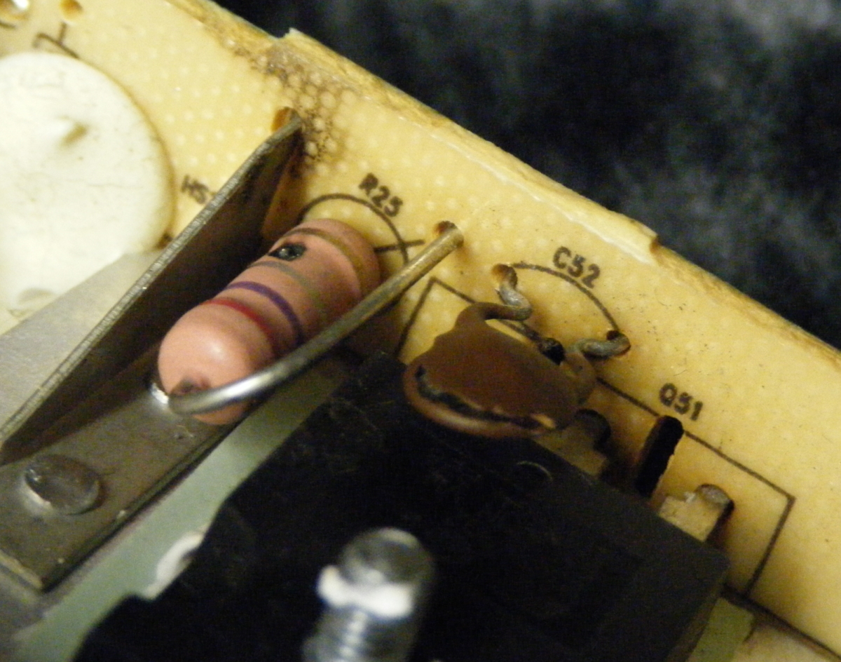 R304 is blown, it looks to me like it is a 2K2 resistor "2201"