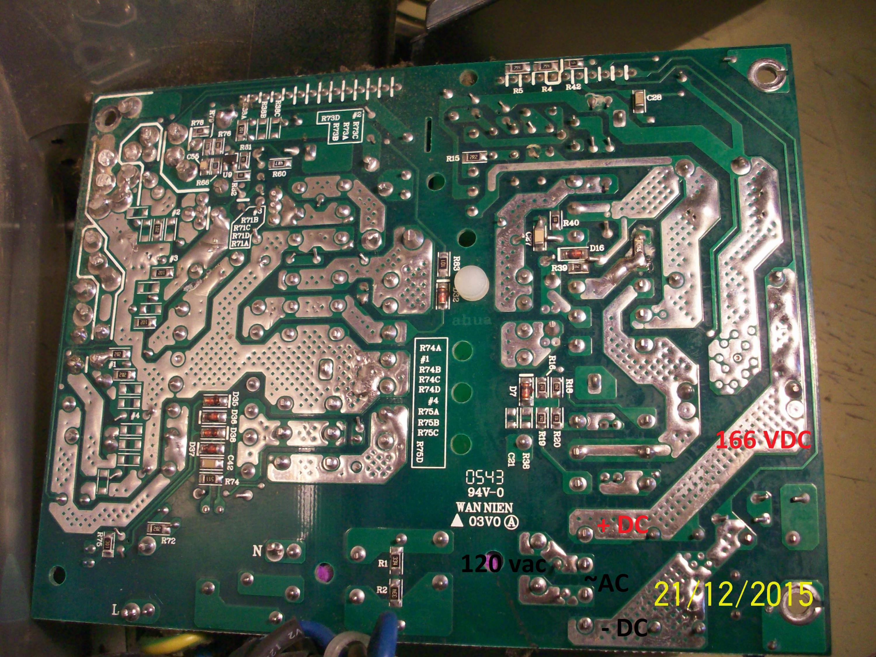 So far I know the fuse is good and the full wave bridge rectifier on the board is getting 120 vac in and putting out 166 vdc out.