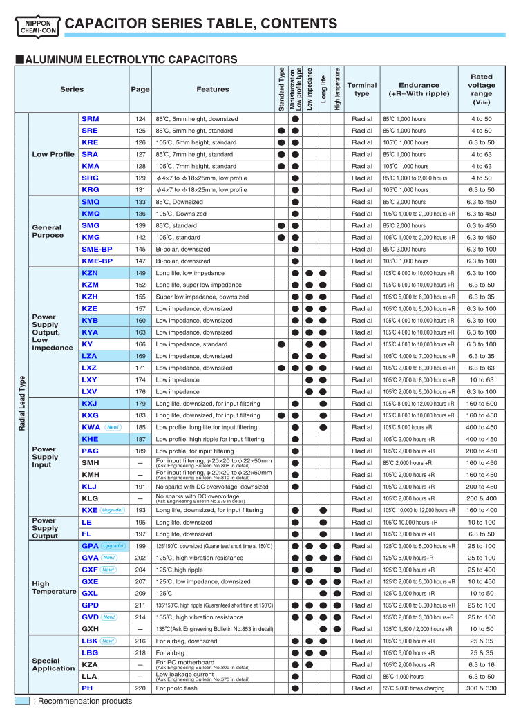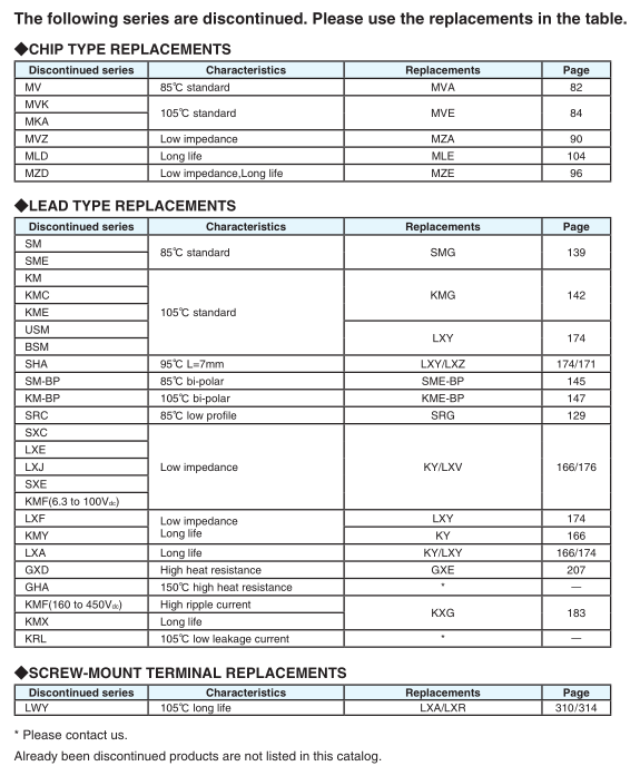 "KZH up to 6,000 hours, KZE 5,000." That means up to, not only for 5,000. Of course case size directly affects lifetime. The datasheets make that very clear. Also, those endurance ratings are only made with 60% confidence. Yes, I know you're of the opinion that KY is only "just obsolete" because of the high endurance rating. KY is indeed an upgraded series. When KY first went into production (early 2001), it was only rated up to 6,000 hours (datasheet attached), and was later upgraded to 10,000 (in April 2002 in accordance to an old record of NCC's site on the web archive).