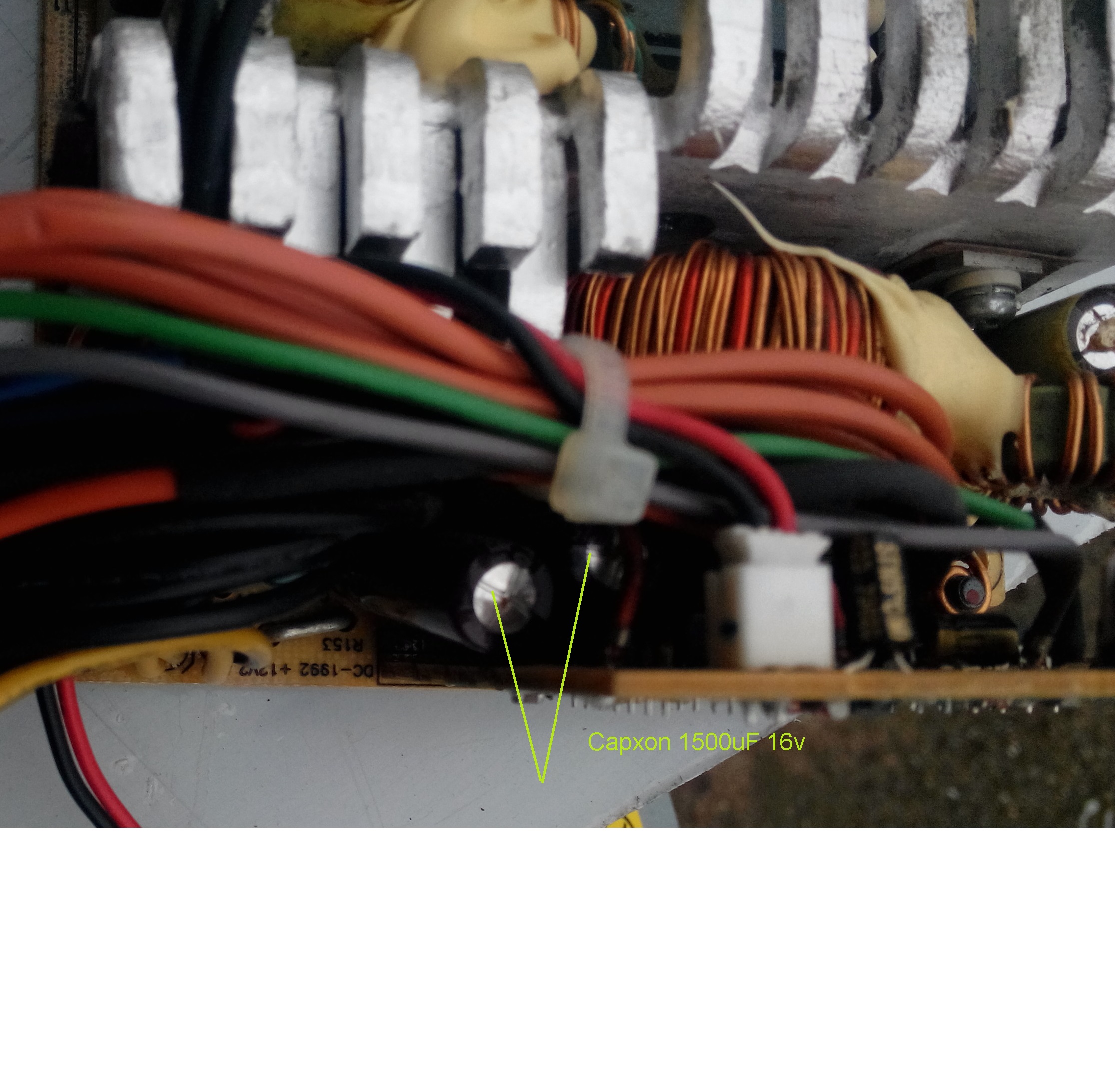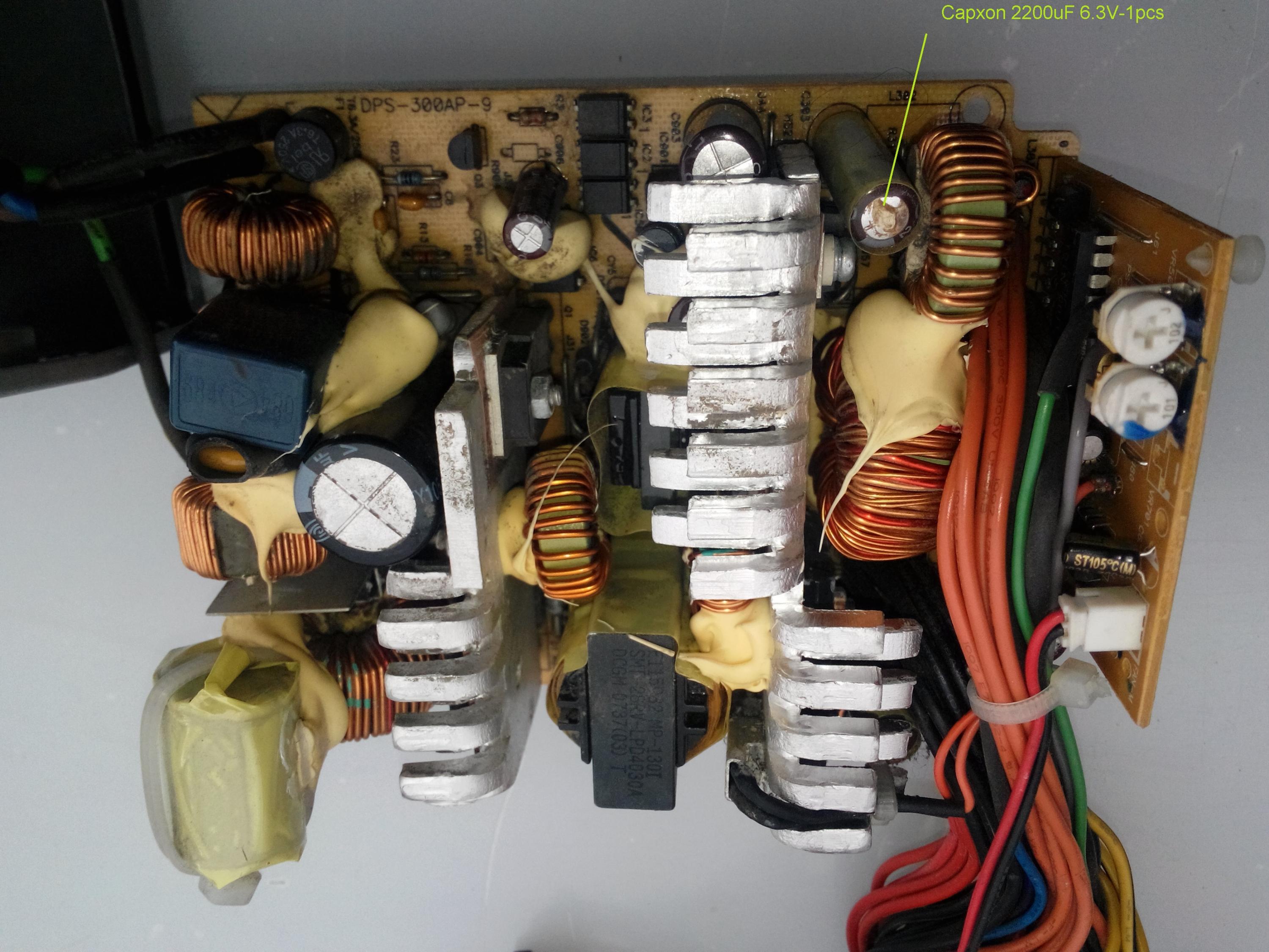 Because is SFF psu, I had to desolder 2pcs 16v 1500uF Capxon and 1pcs 6.3V 2200uF Capxon (wrapped cap).