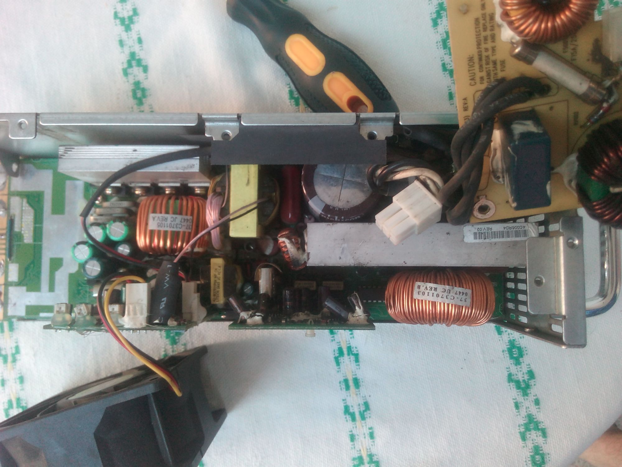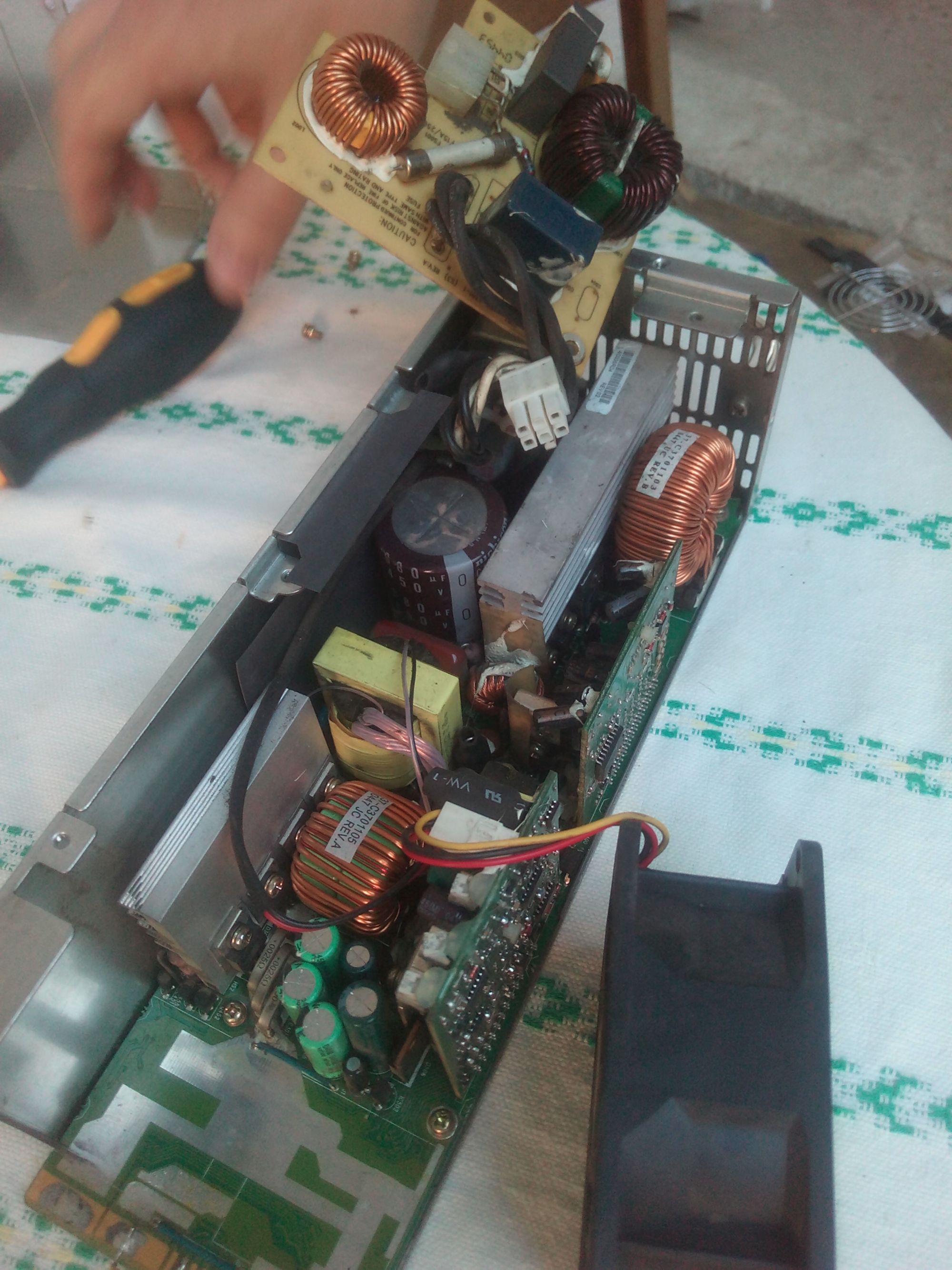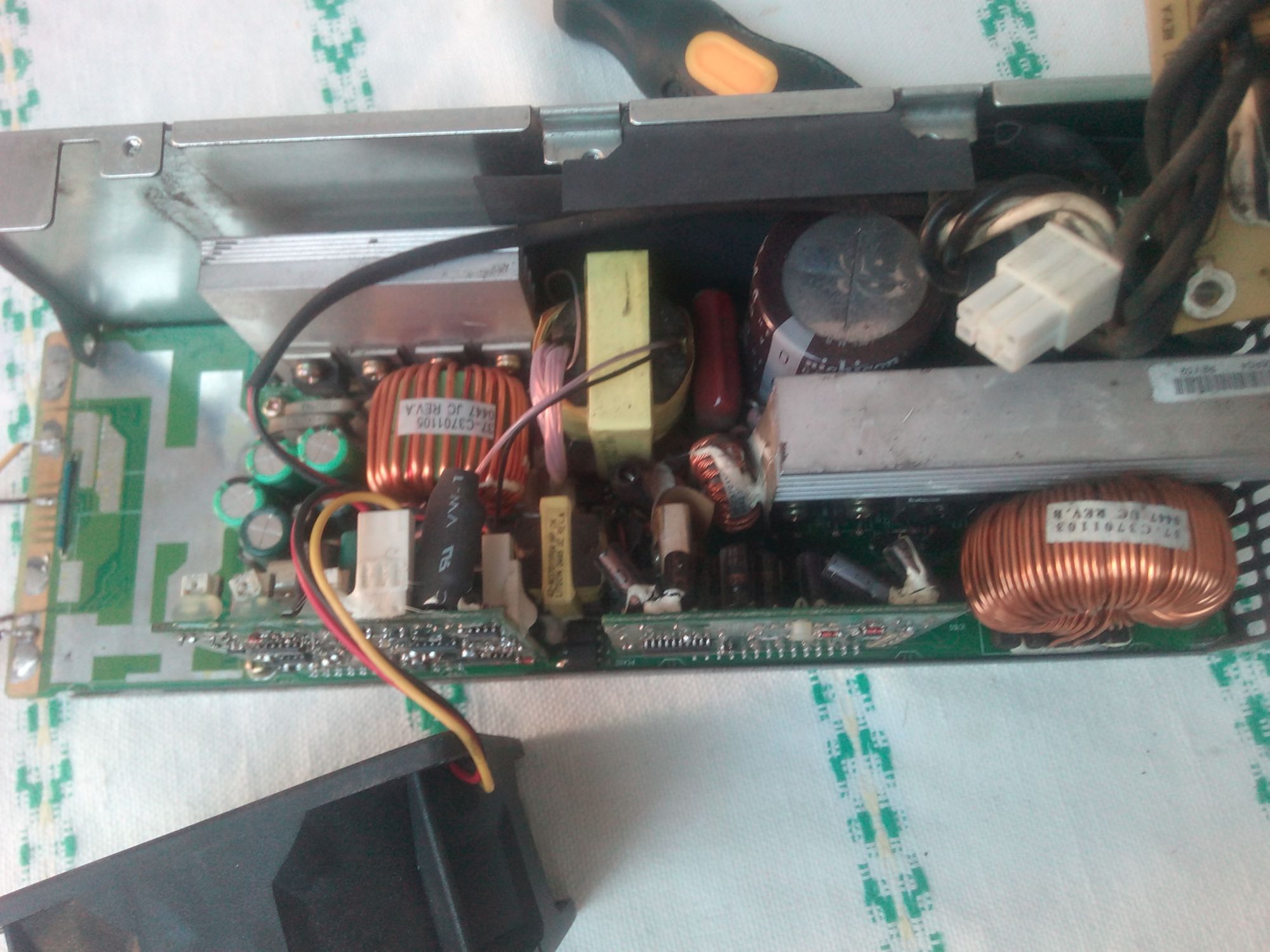 Power supply from HP server, model PS-3701-1, worked well for some time, and suddenly, doesnt give voltage, fan revolves, but no voltage.