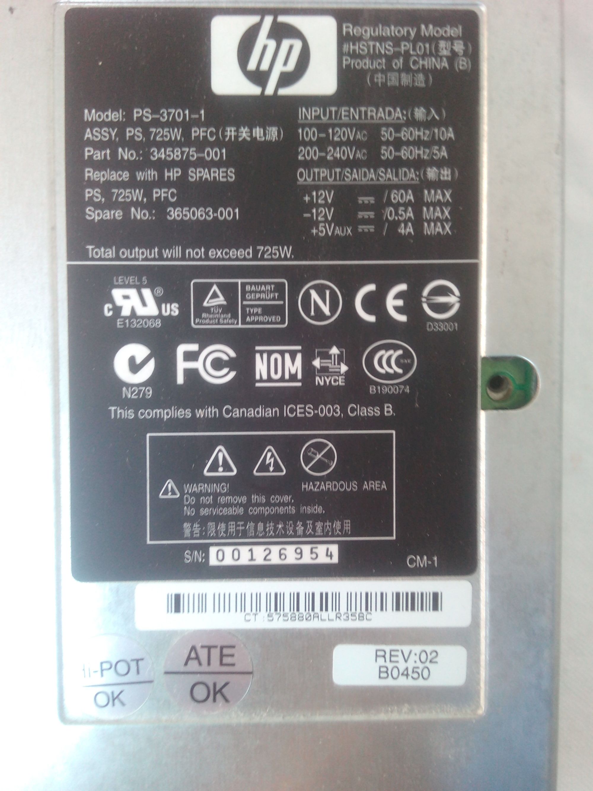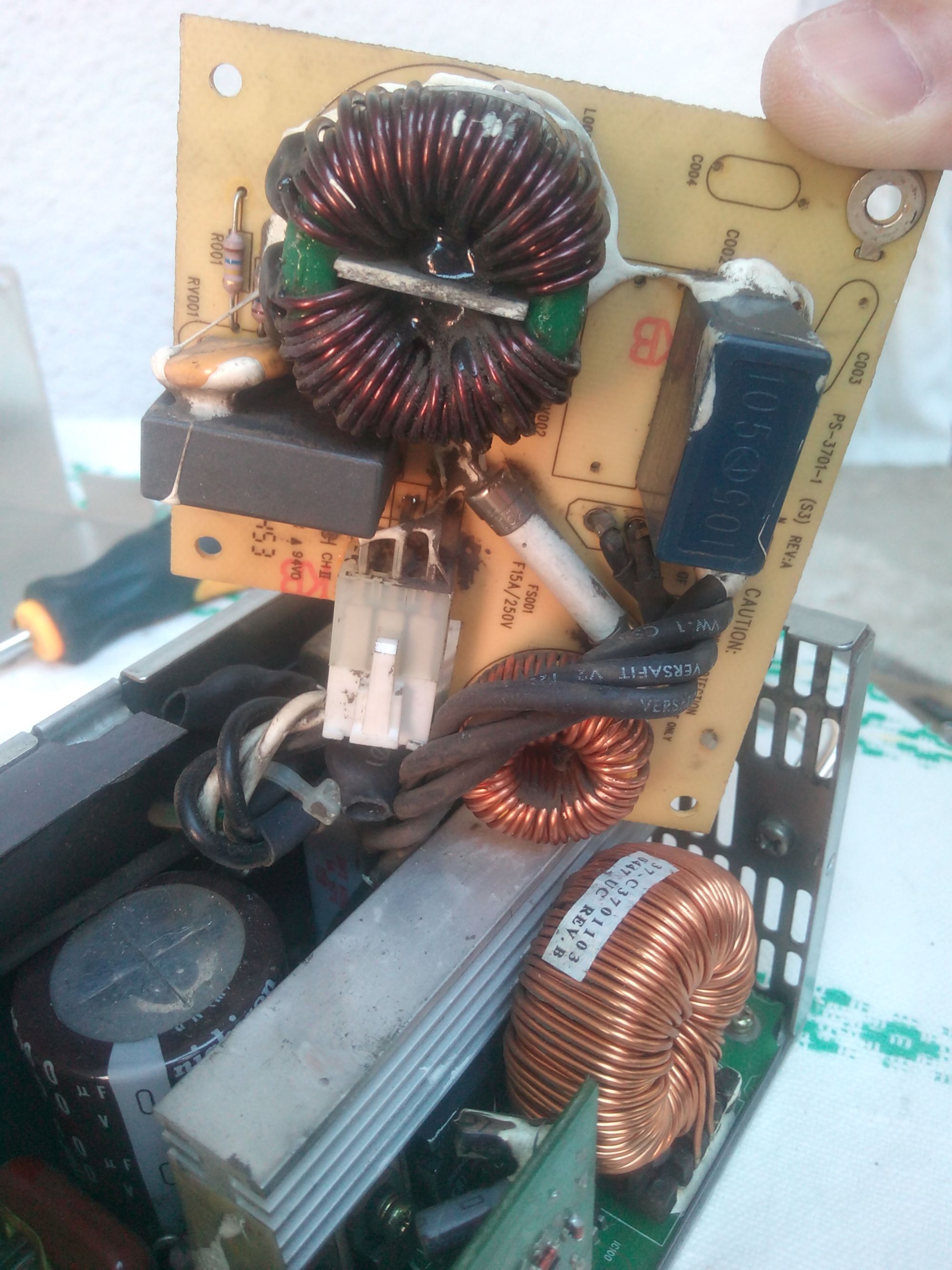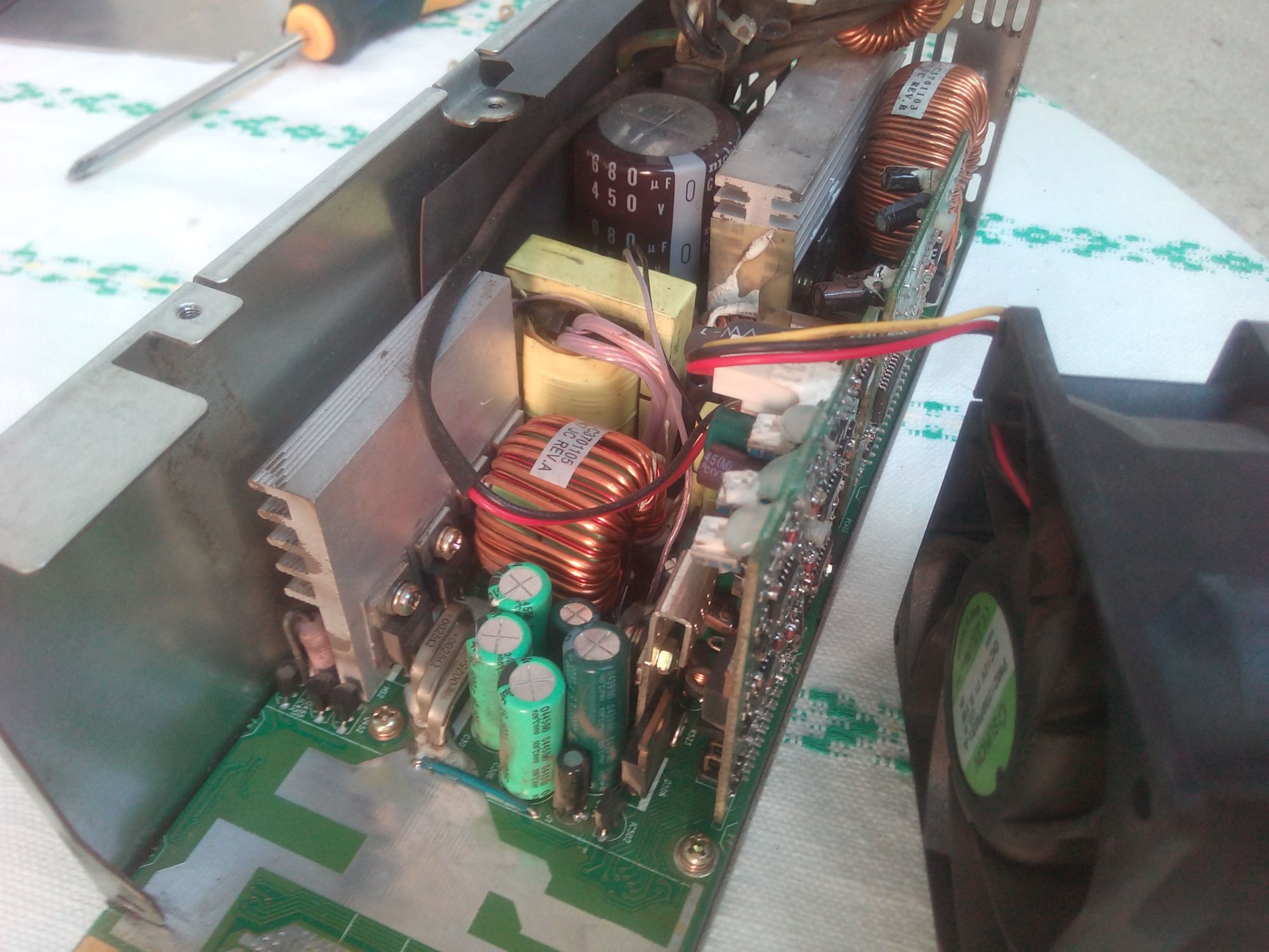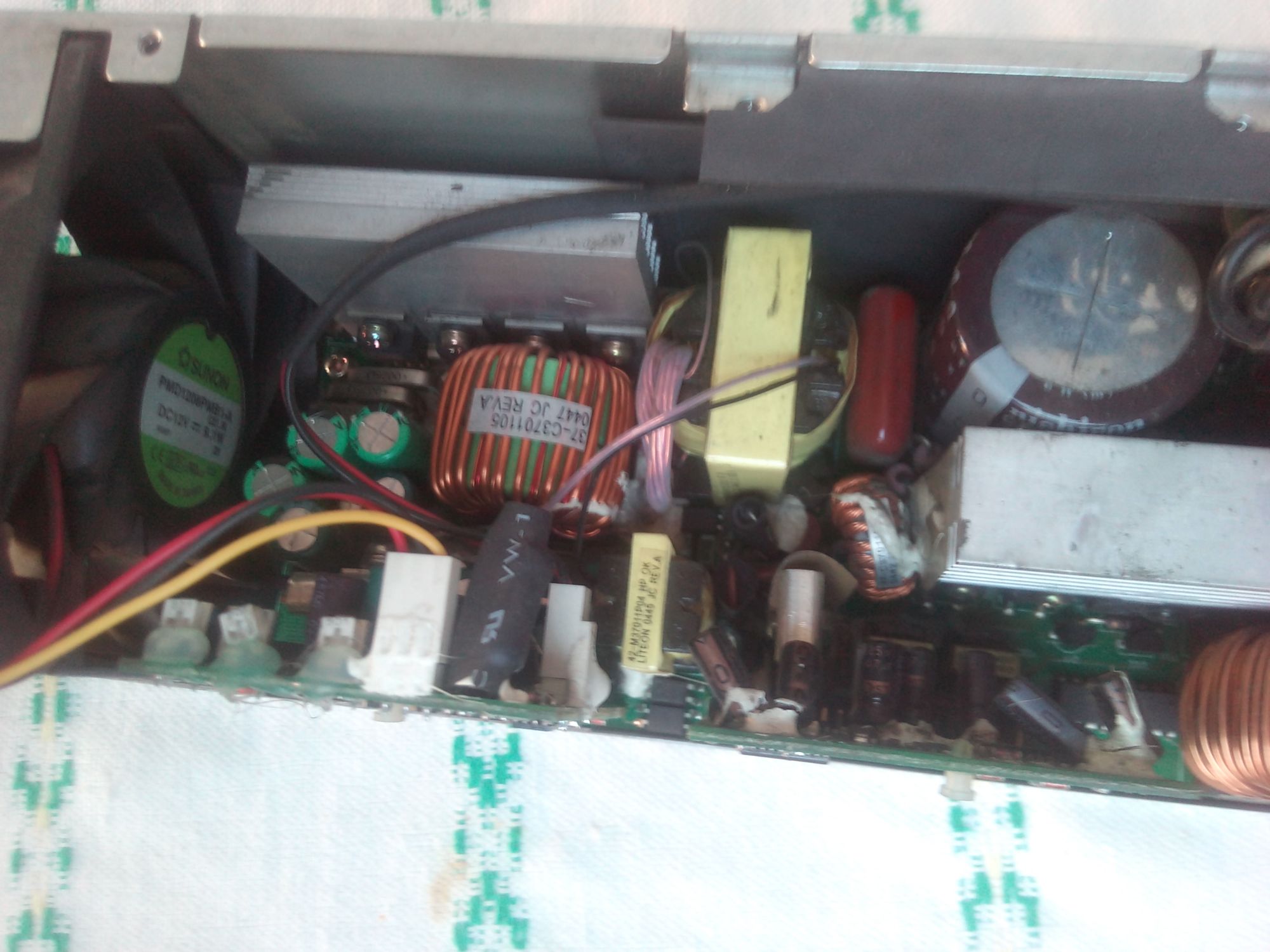 Power supply from HP server, model PS-3701-1, worked well for some time, and suddenly, doesnt give voltage, fan revolves, but no voltage.