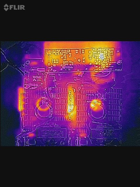 Borrowed a flir one and took some photos, as you can see both 500W supplies heat up in the same place around primary capacitors and both riser cards to the left of main capacitors heat up equally.
