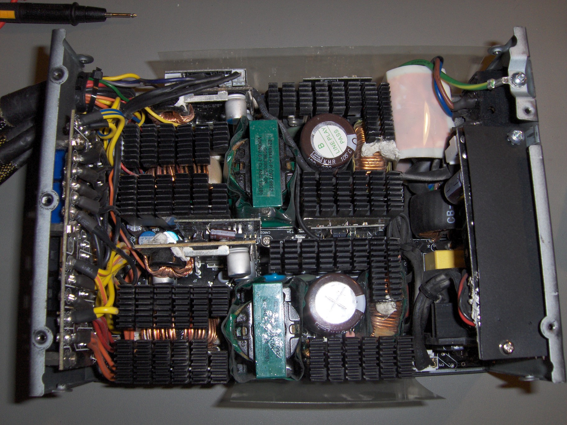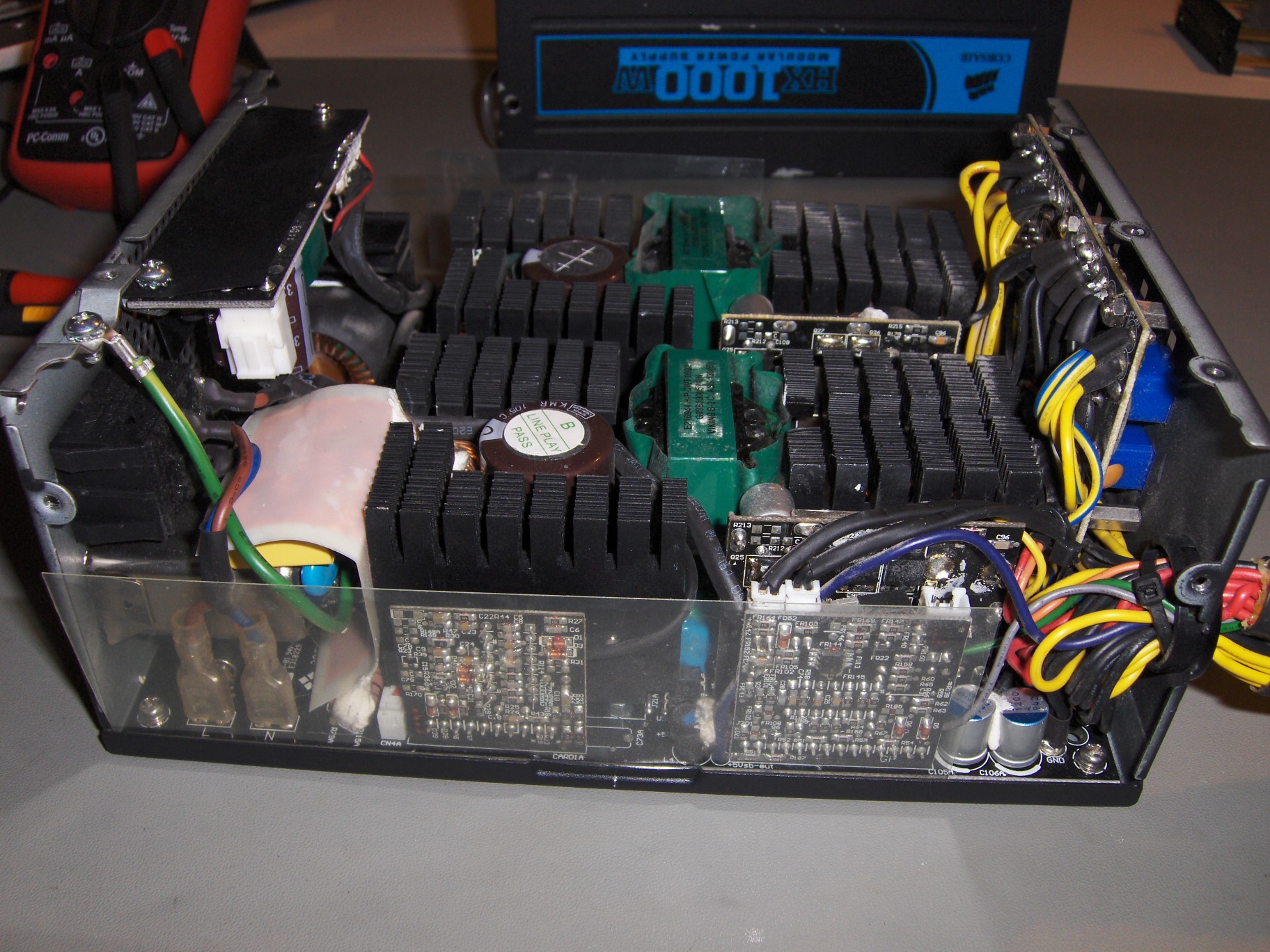 It was one of the (from what was left of it) hefty sized capacitors inside - one of which (literally) went Ka-Boom - therefore replaced the exploded AX850 PSU under the manufacturers warranty (had to ship it out to the Corsair Netherlands Return center first - they accept just the PSU alone without any modular cables etc.) and eventually sold its identical replacement off to get it out the door and away from me!