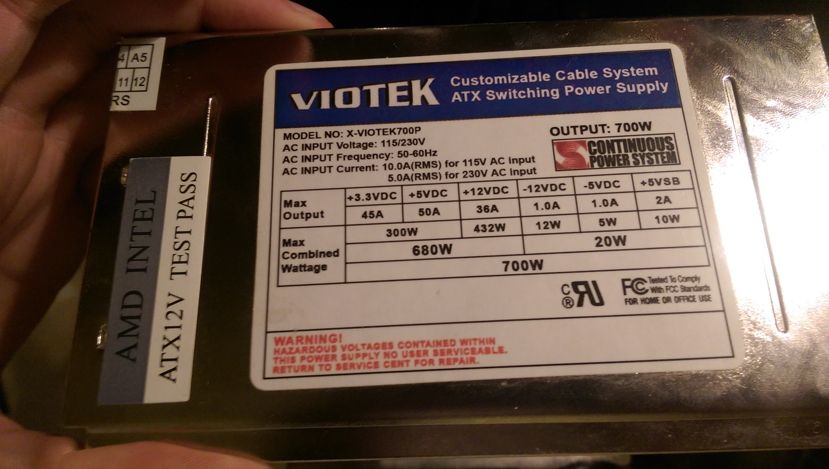 Technically speaking, Viotek might have actually rated this PSU correctly. After all, they specified 700 Watts continuous, but they didn't specify which numbering system they were using .