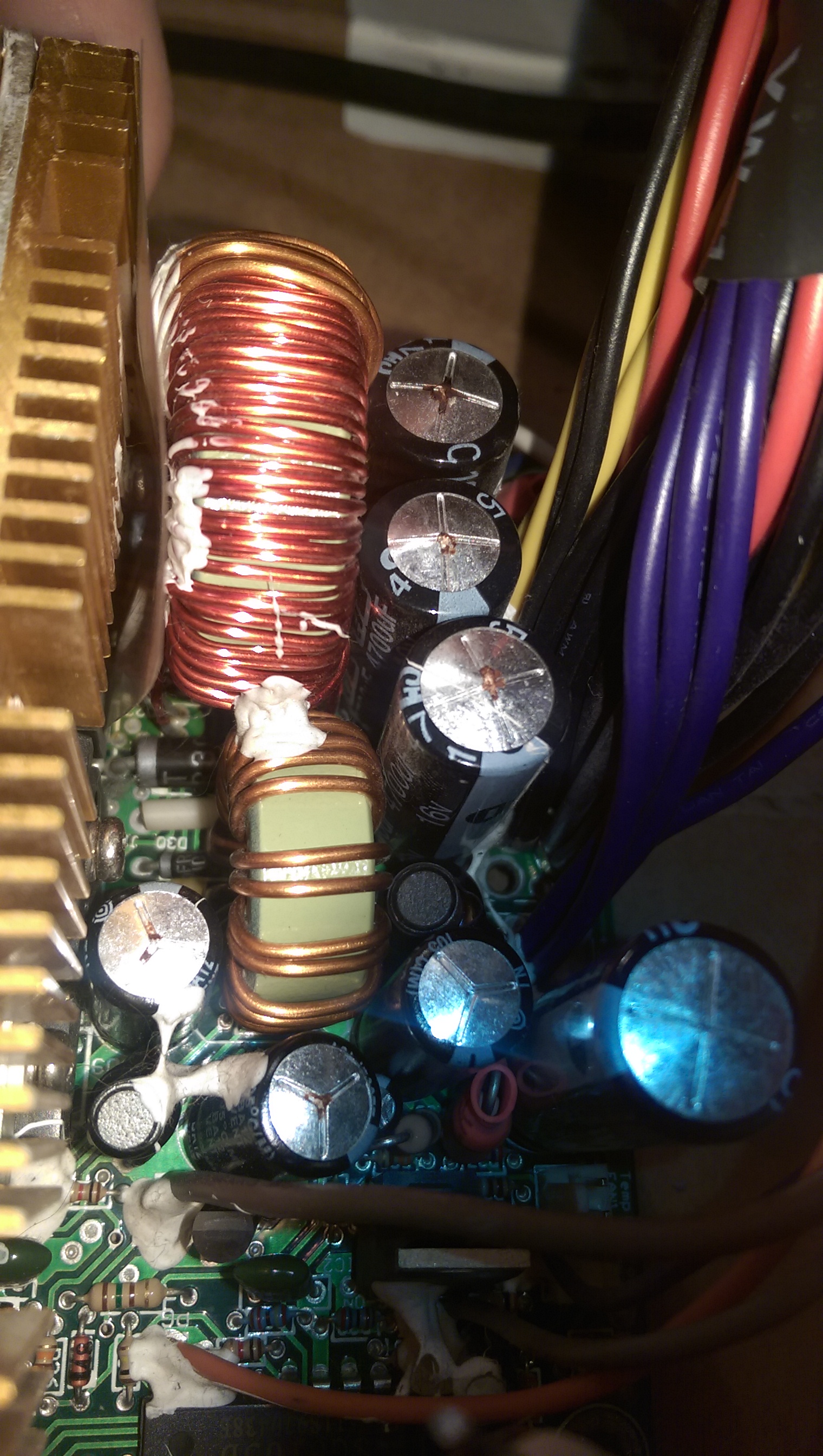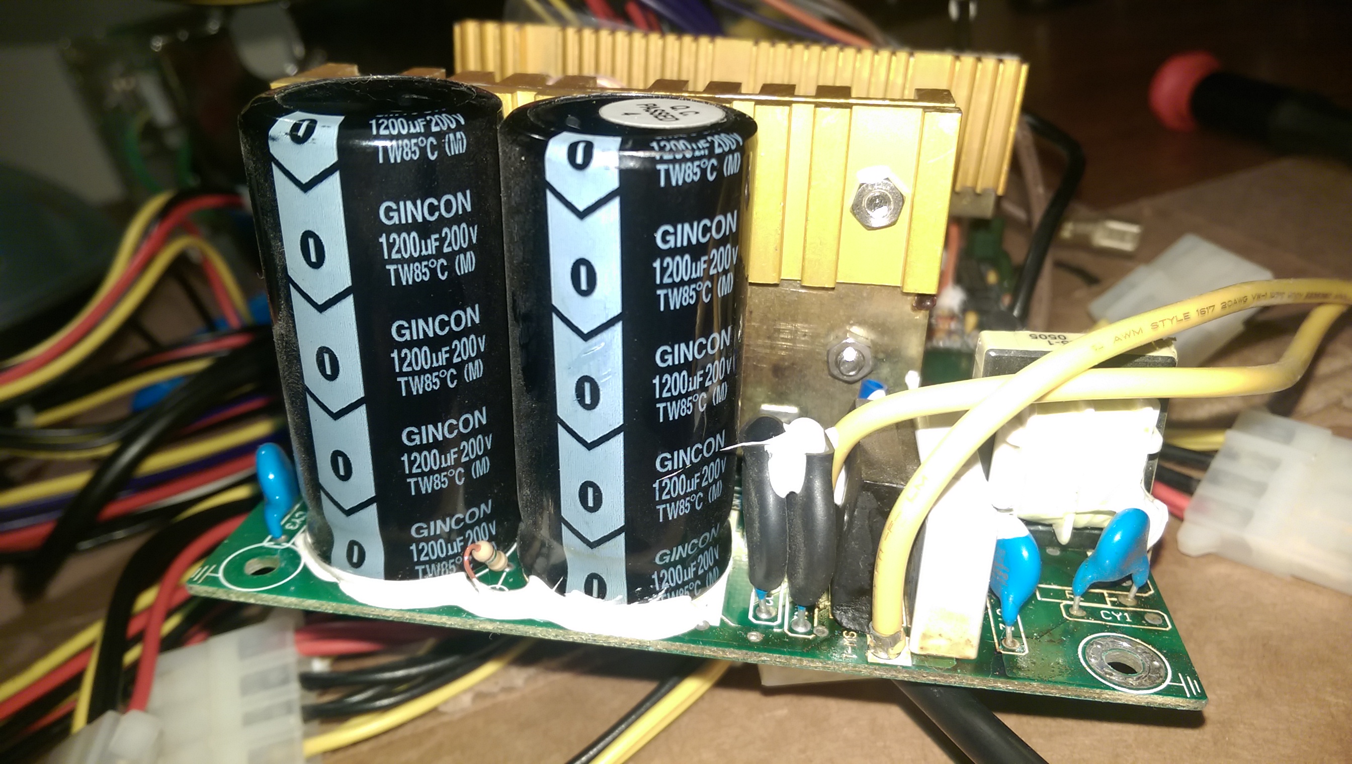 Yeah, the GL (Goldlink) cap blew its bottom rubber bung out and desoldered itself. It outgassed so quickly, there must have been more than enough internal pressure. KZGs, YECs, Sacons, and Lelons were known to do that as well, back in the day. I wonder how many of those GL and Fuhjyyu caps bulged sitting in storage if any. And as far as I know, PSUs that use ultrafast recoveries on the +12V rail may not take too kindly to being swapped for schottky rectifiers because of the transformer secondary design (I believe you once encountered the same issue).