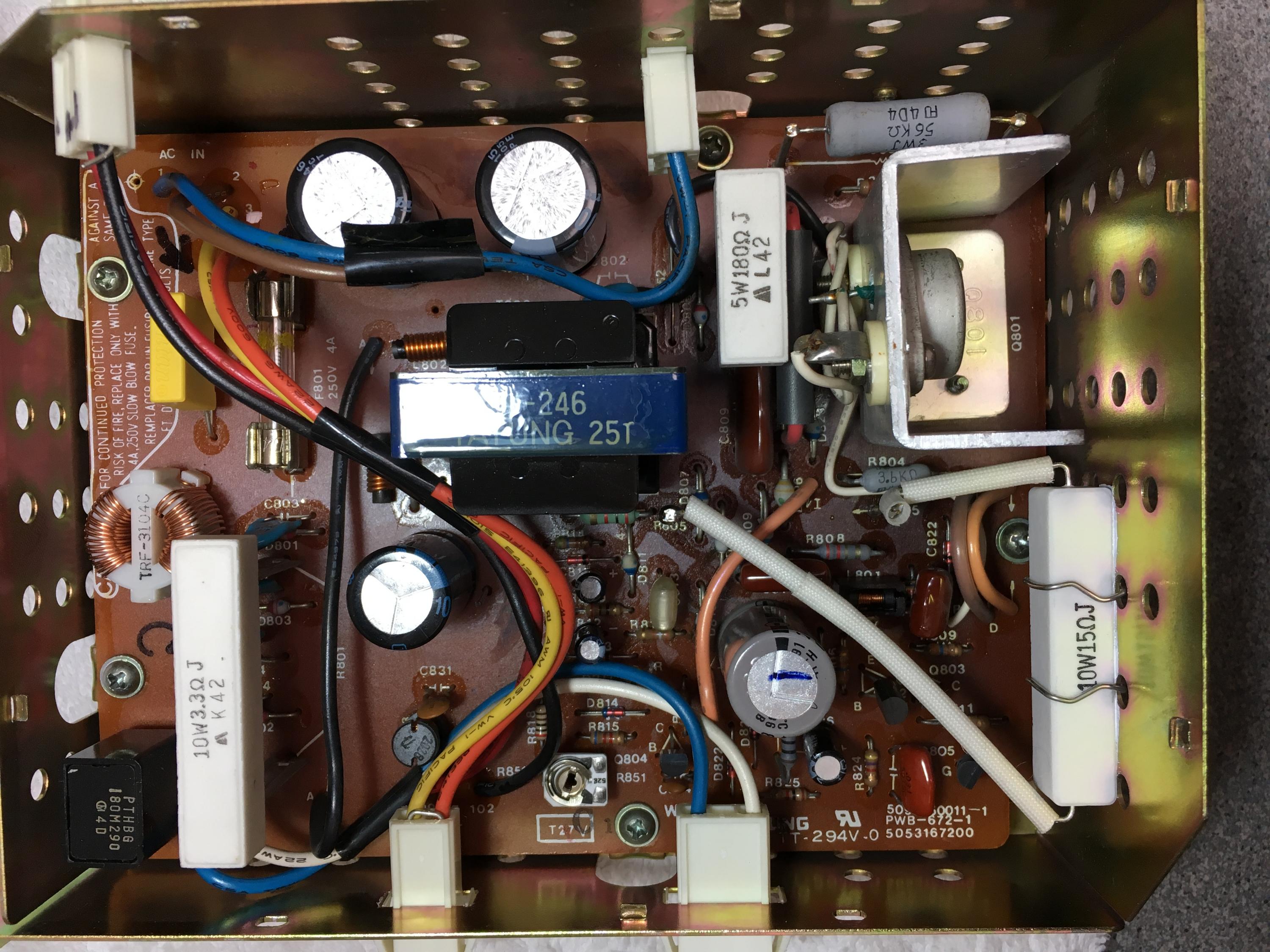 The PS in question is from an IBM 5153 CGA monitor which was made by Tatung in 1985. The PS is a separate internal assembly that produces 115 VDC @ 0.5 A for the CRT monitor chassis. It's housed in a metal enclosure with ventilation holes.