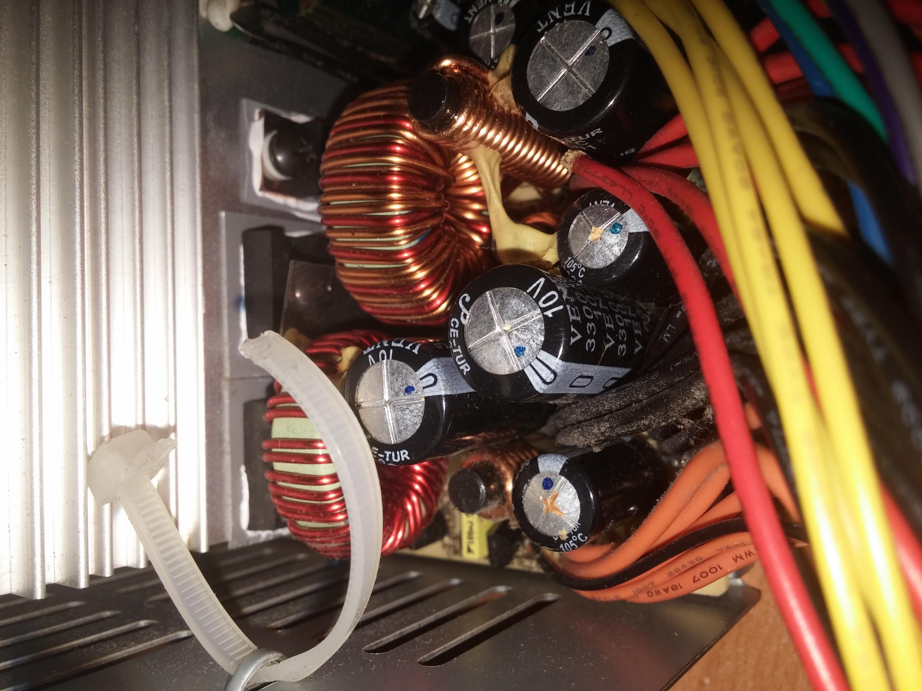 I replaced the obviously bad Ltec LZP 2200uF 16V and the obviously bad pair of CapXon GS 18x40 620uF 200V with Nichicon 22x50 UPT. It lights up my digital PS tester with suitable voltages, but it emits a screechy squeal that just drowns out the two 80mm fans. It probably would only very slightly annoy installed in a PC in... -
