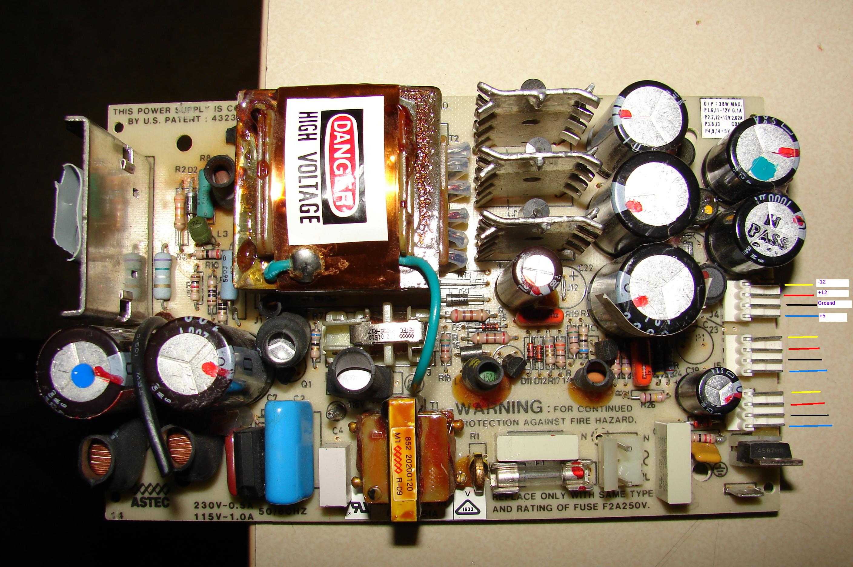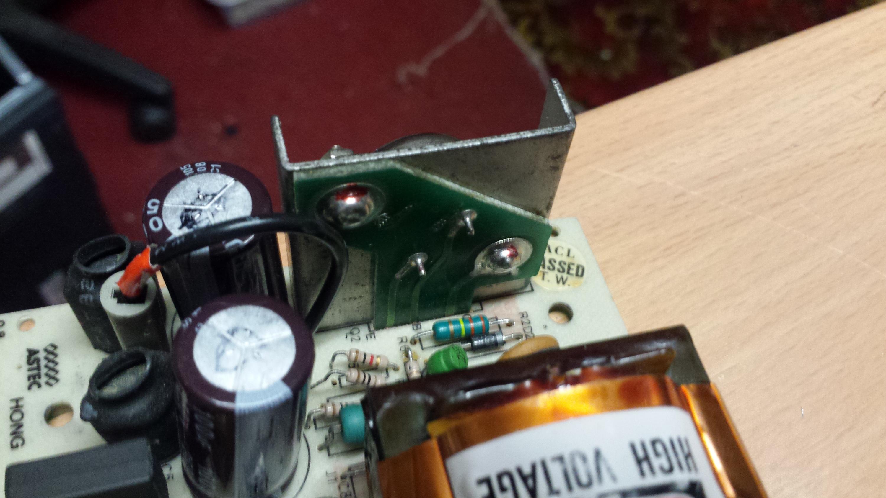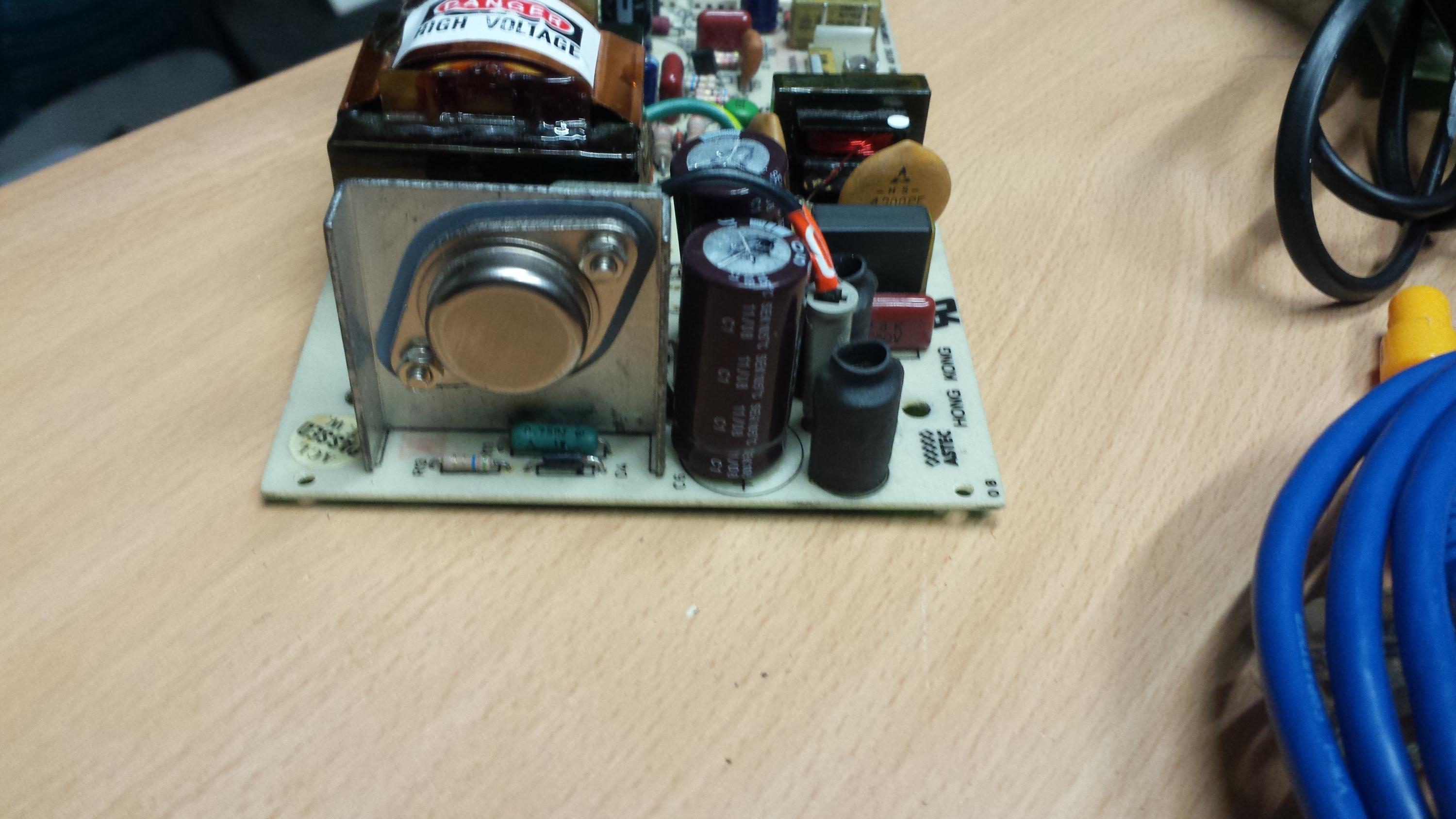 Yes you are right. look at the attached pics and you will see the markings on the transistor are ground off. There is no reference to what this isn anywhere in any of the manuals either. Do you know what this is?Astec was a good company, making good stuff. They also made the Apple II+ power supply. That's a discontinuous flyback design, very stressful on the output caps. If you are testing it outside of the computer it does need to be loaded to perform well.