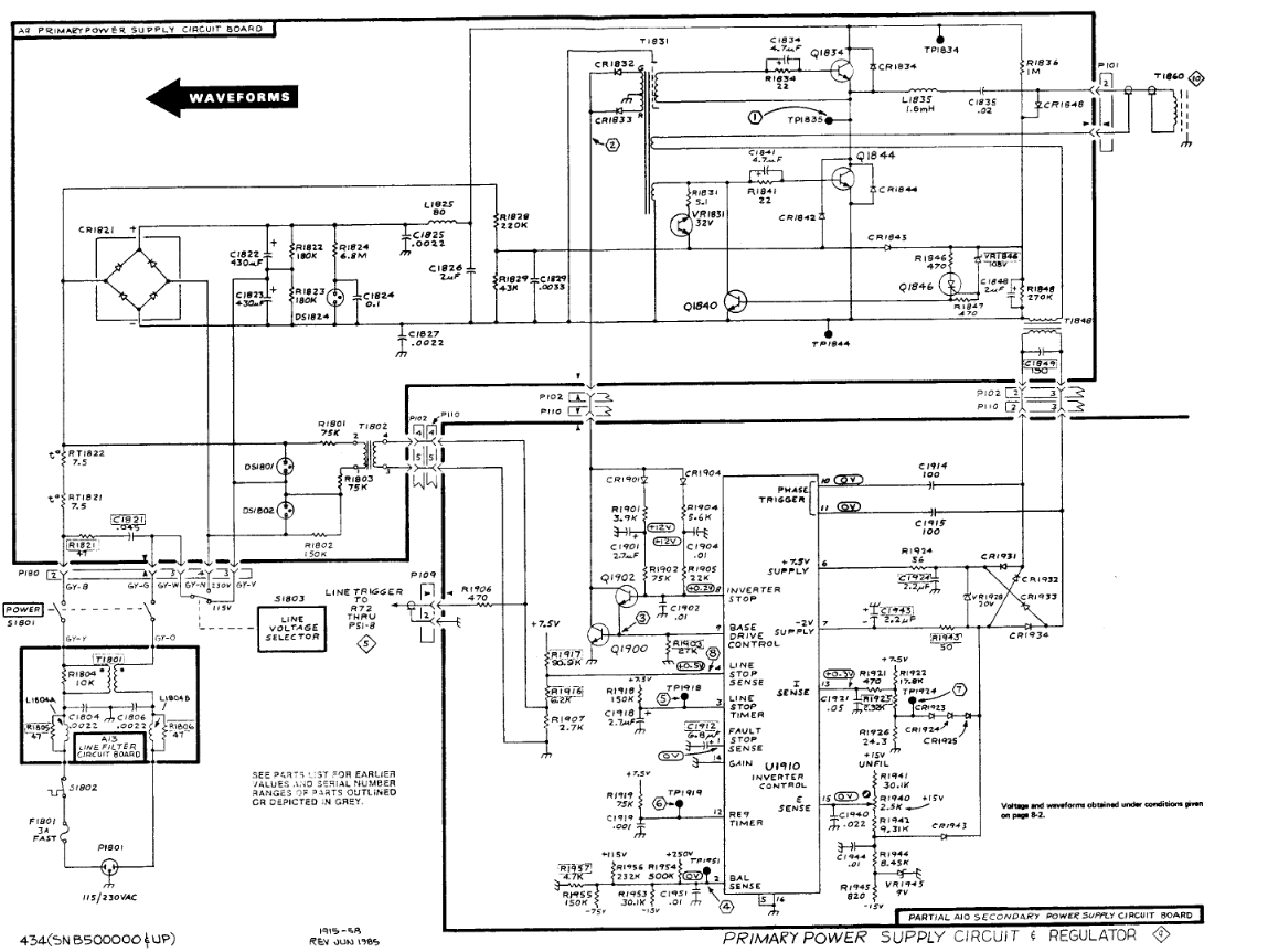 I am looking at service manual pdf pg192/199 primary power supply & reg. for Tek434 s/n 500000 up; Is that correct, because Q1834, Q1844 are the bridge and you are at Q1080, Q1032 ??