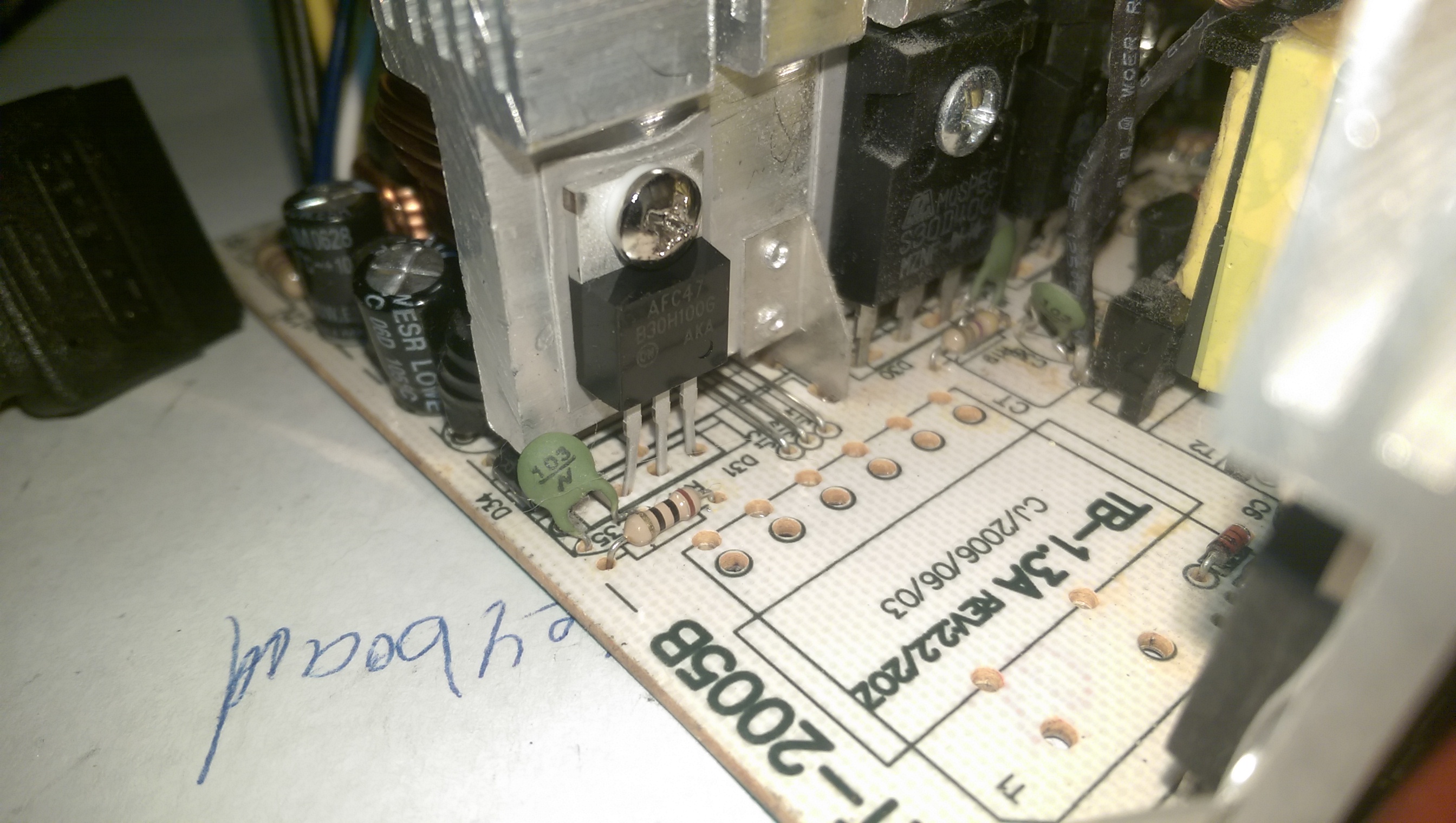 And this is a good one... Manufactured: January, 2007. I'm impressed that all of the caps are intact. They consist of only JEE and GoldLink. It's obviously not a 500W PSU, but I blame V-POWER, not Sun Pro. I'd just call this a reliable 300W PSU.