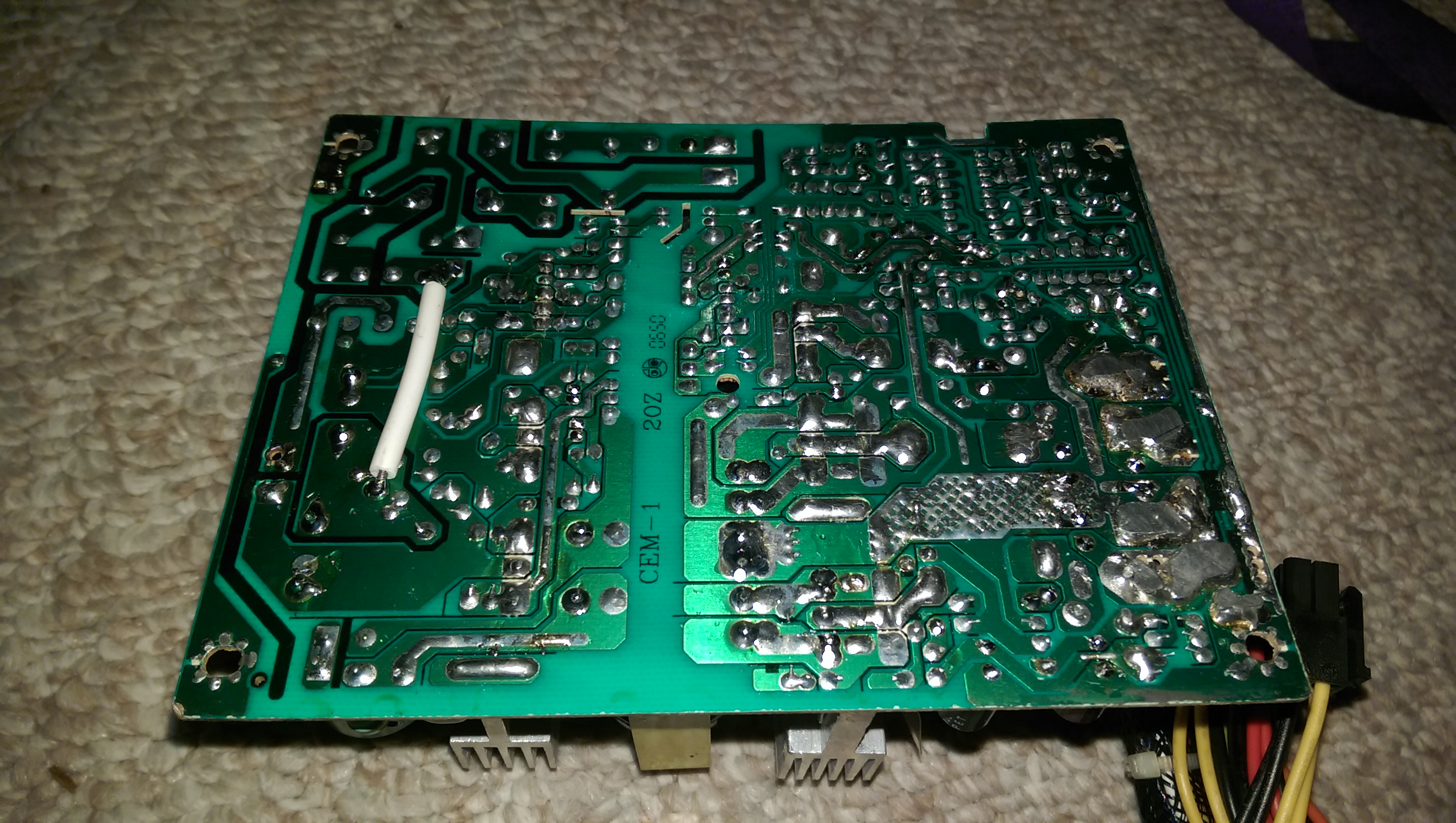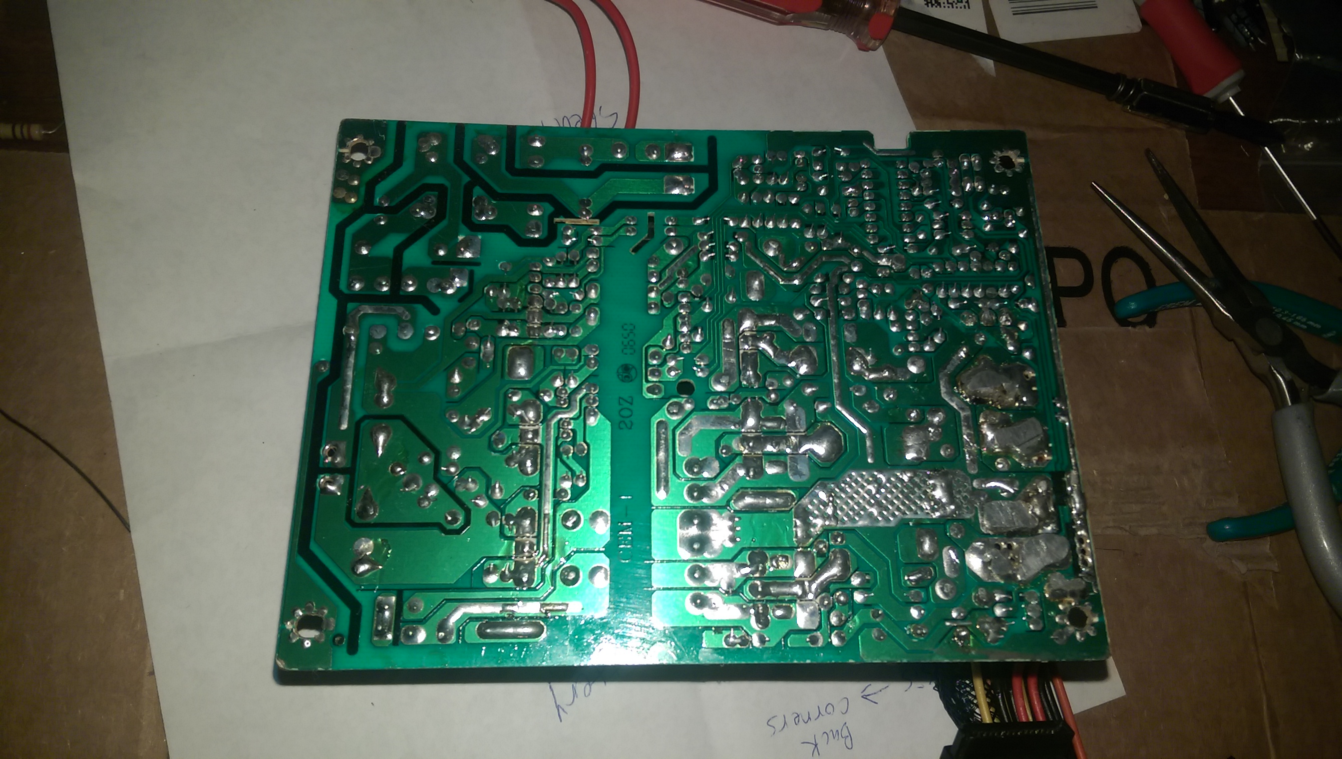 So far I have only tested the caps on the 5VSB and 12V rail. To my amazement they all tested good. The only thing that required some work was redoing the soldering. It was pretty bad, but I've seen worse. There were a lot of blobs, and solder balls rolling around. Trimmed a few leads too.