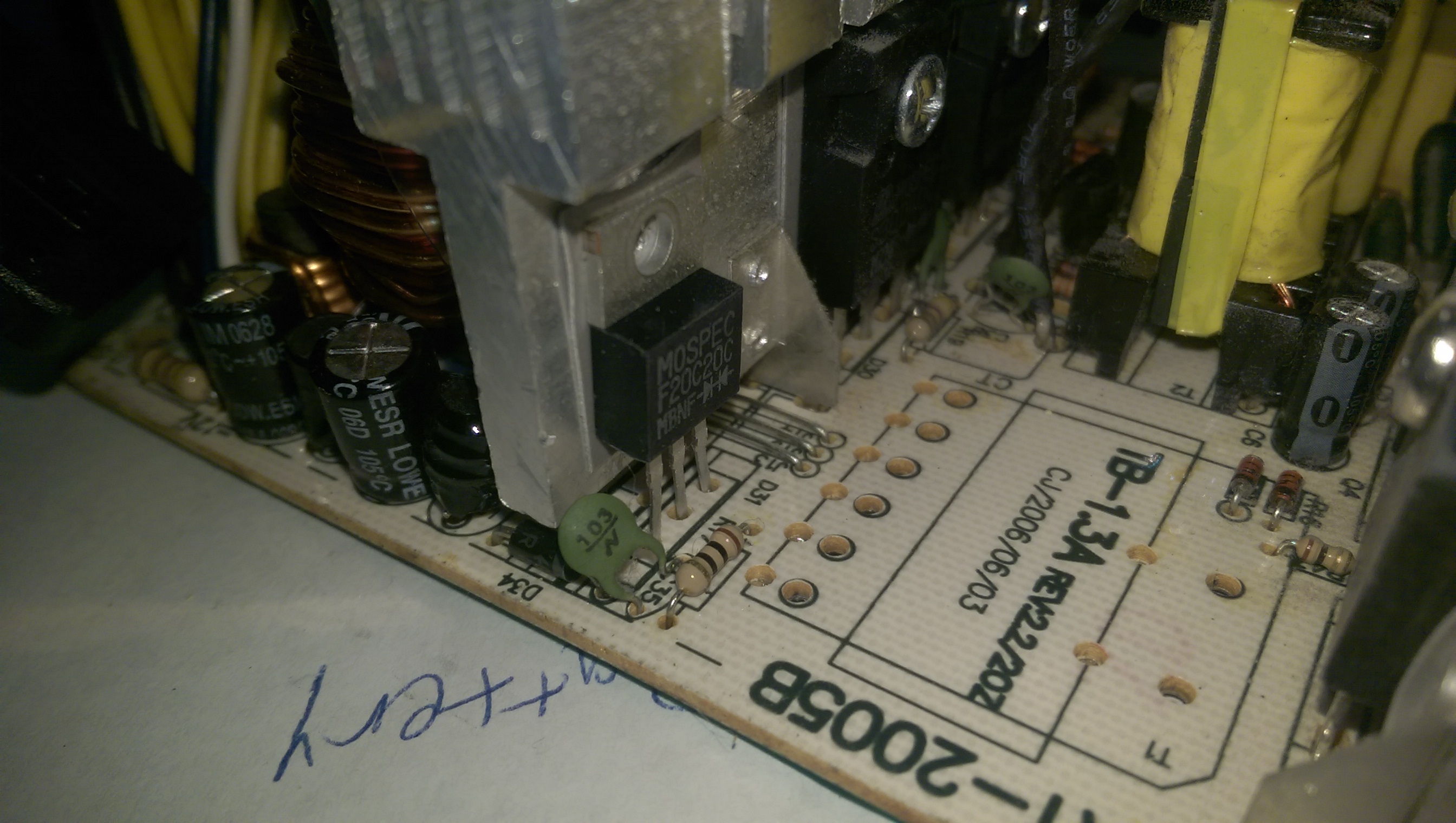 Uses MOSPEC S30D40C for 5V and 3.3V. Used a MOSPEC F20C20C Ultrafast on the 12V, which I already easily replaced with an ON-SEMI MBR30H100CTG. All I had to do was remove the main transformer instead of the whole heatsink (I wanted to see the markings anyways!) Since it's a schottky, the voltage loss is insanely lower! 0.76V @ 15A (25C) versus 1.3V @ 10A (25C) The increased efficiency will be nice because the fans likes to spin very slow. The silence is part of the reason I love these Sun Pro units so much. The secondary heatsink is very thick and has lots of fins so I don't think there will be any cooling issues. The toroid coils are good sized and have plenty of wire on them. Maybe Pete S can add more on that