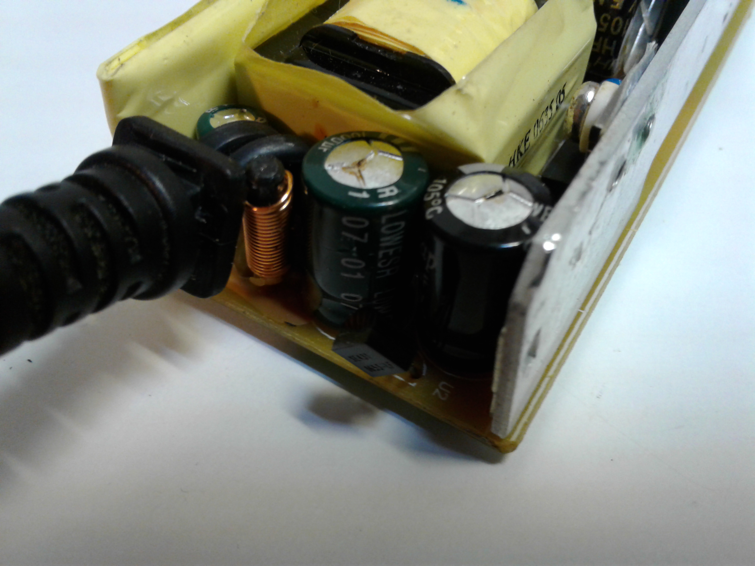 i opened it up to see what went wrong and i noticed that 2 1000uf 16V caps had vented and a 220uf 35v cap was on the verge of venting.
