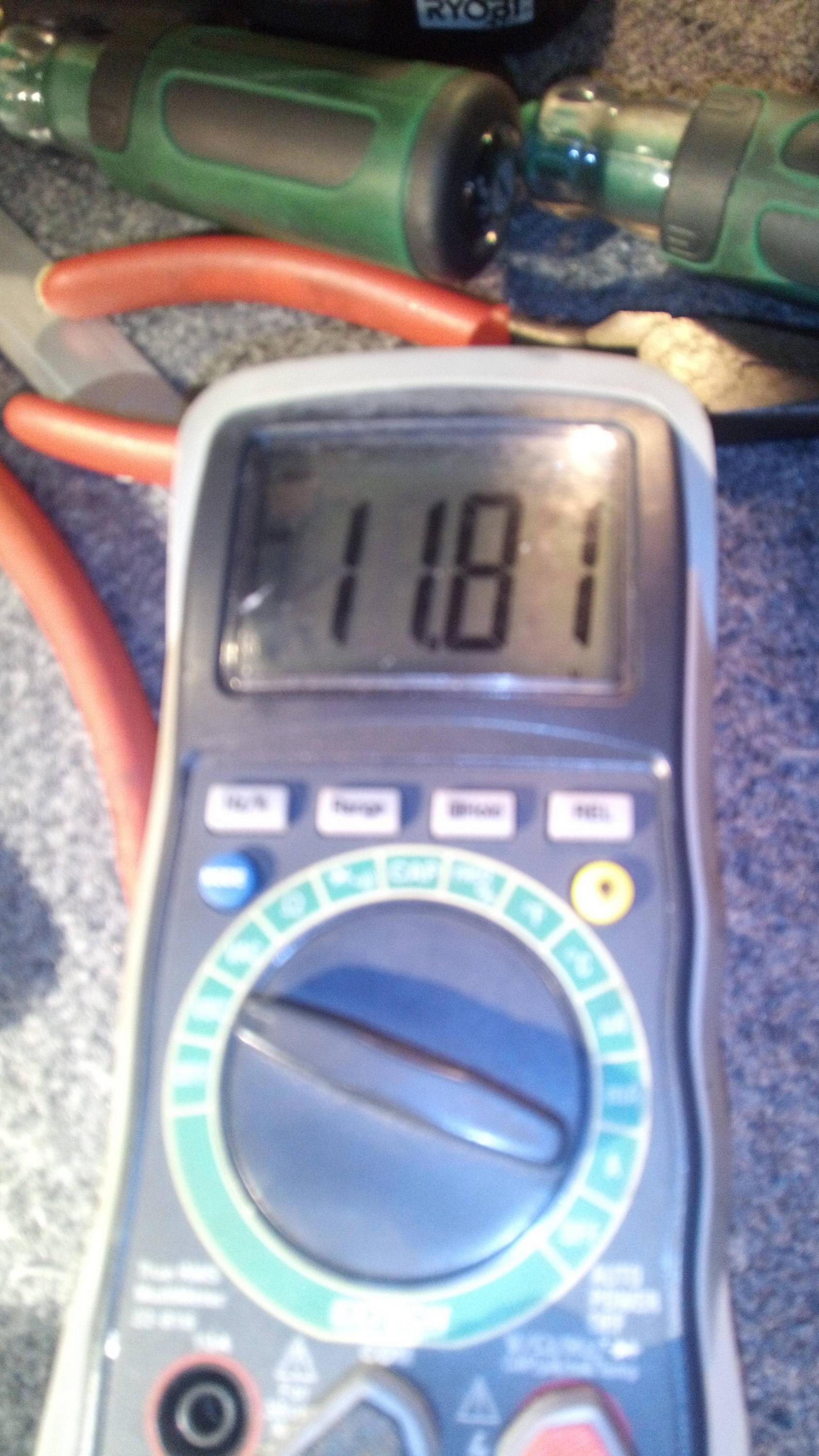 I put a 10 ohm resistor on it to see if it'd go up, and instead it went down to 11.71. 6 ohms made it go down to 11.61, fluctuating between high 11.5's and low 11.6's. 2 ohms = lasts for about 10-20 seconds and then died. I let the caps decharge and the LED go out, and it came back and would stay on at 11.4-11.5 volts at best.